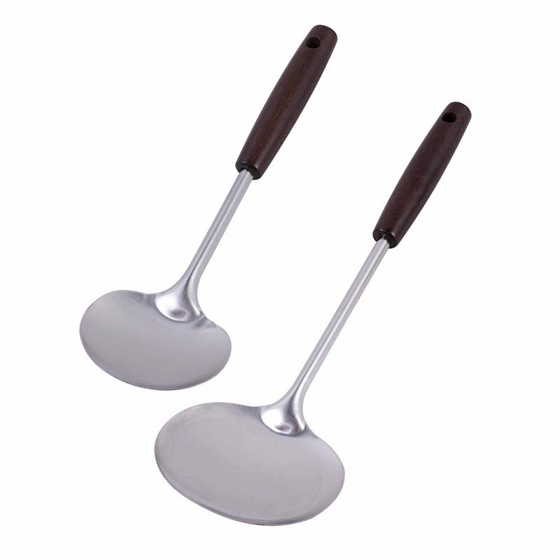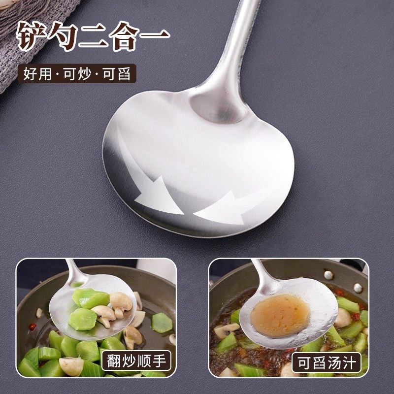不锈钢家用胡桃木蘑菇铲长柄炒菜勺厨房锅铲贵州炒勺家用厨具铲子