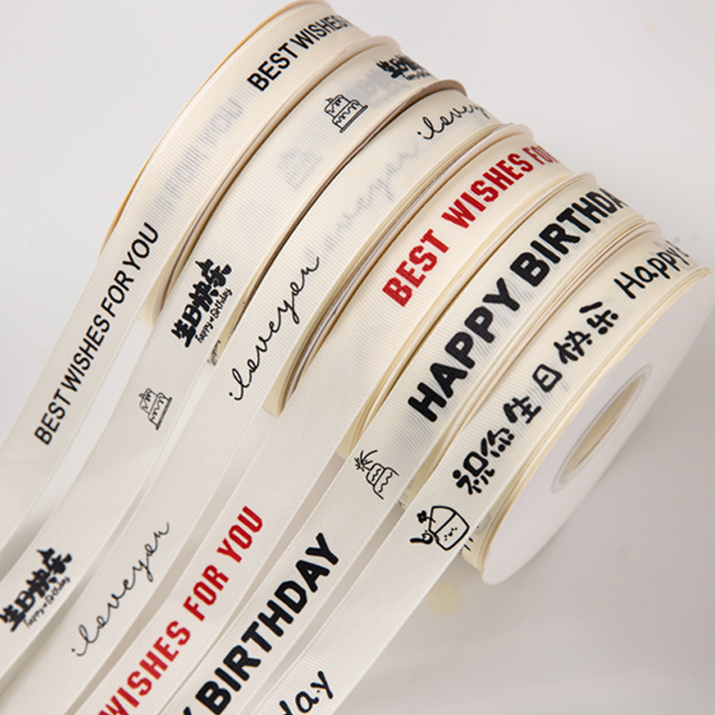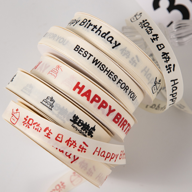 生日蛋糕盒丝带ins罗纹米白色英文彩带花束礼物盒螺纹绑带装扮