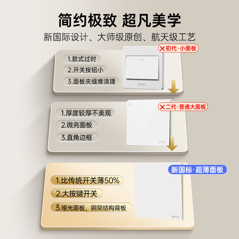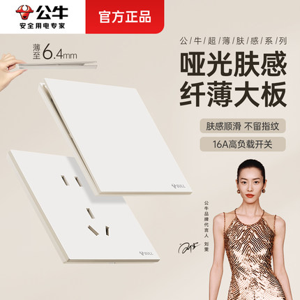 公牛蝶翼超薄开关插座面板肤感五孔86型空调16安g56暗装G57米绒白