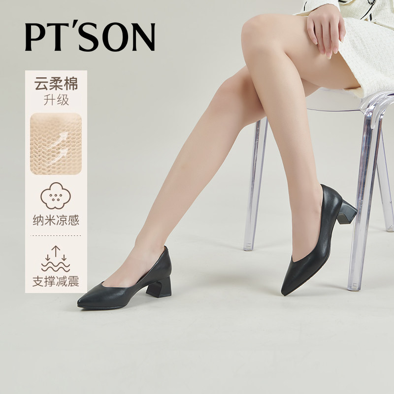 [定制小码33/大码40]百田森新款真皮尖头工作鞋单鞋粗跟大码女鞋