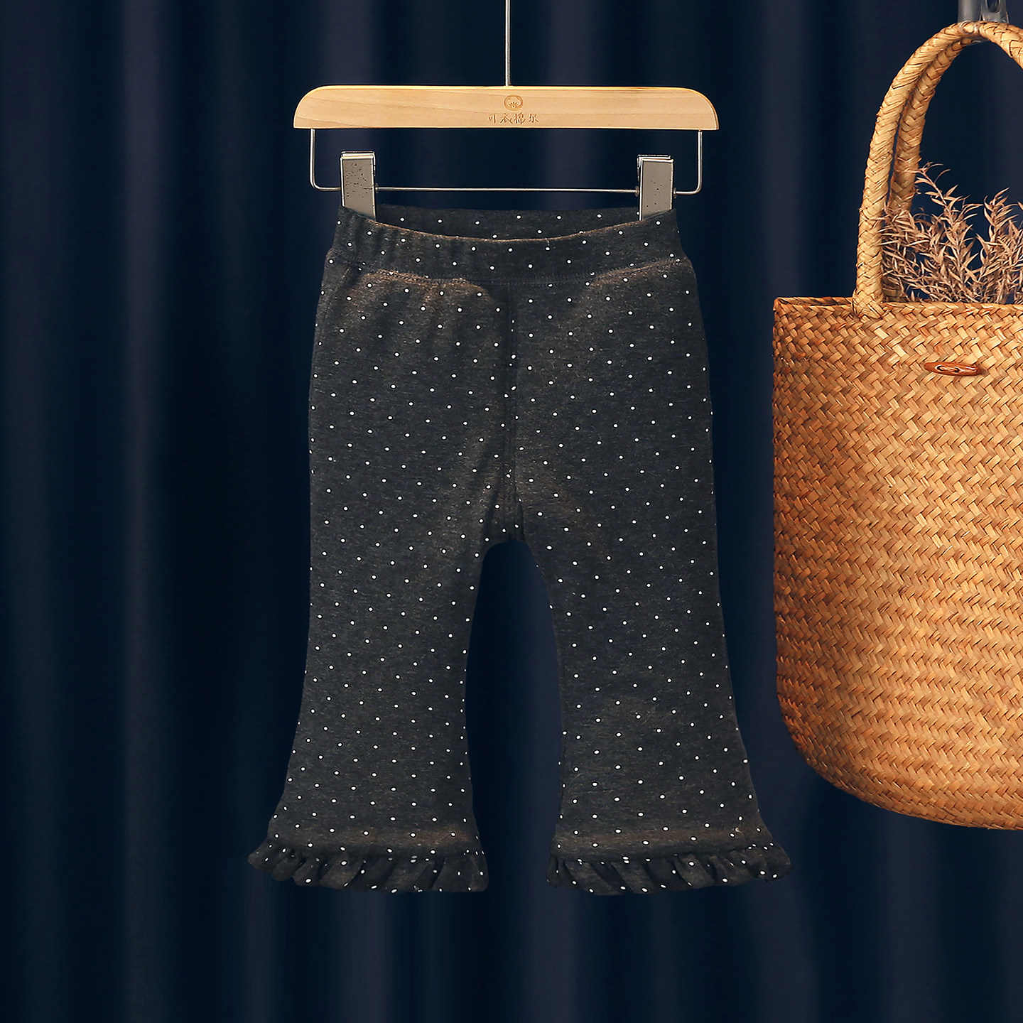 可衣棉尔女宝宝冬圆点夹棉喇叭裤