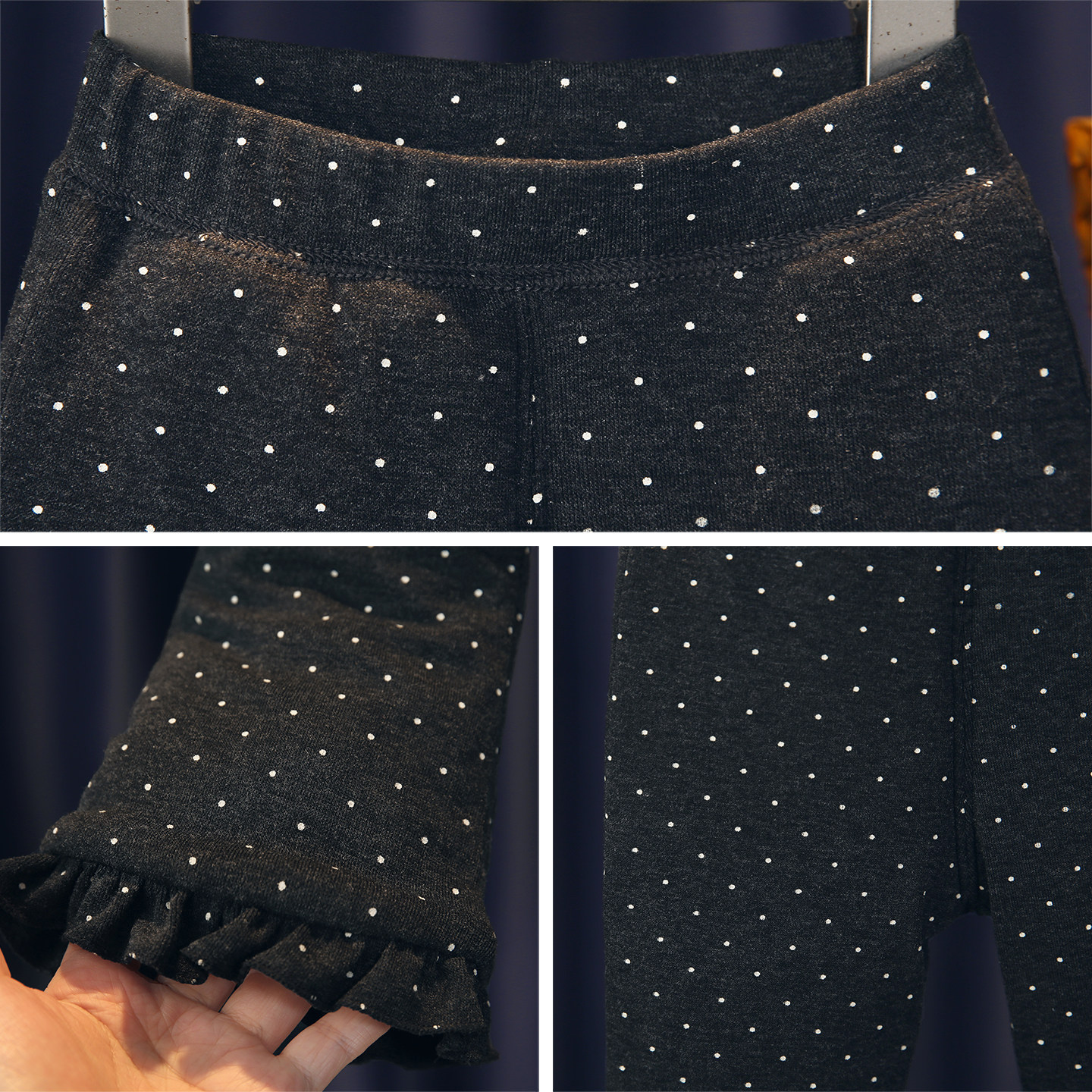女童加绒裤子加厚夹棉2025新款女孩波点喇叭裤宝宝纯棉休闲打底裤