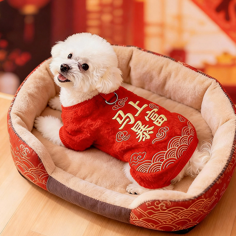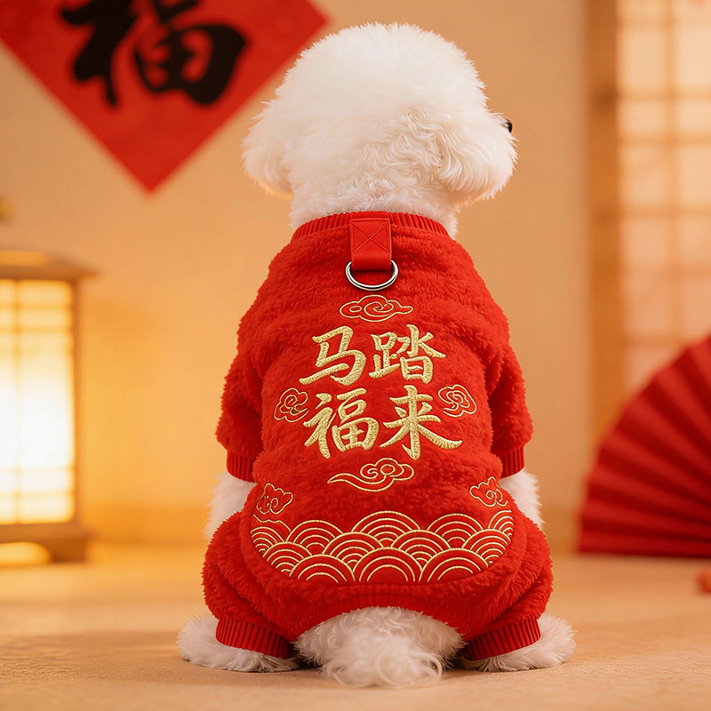 2026新年狗狗喜庆衣服冬装柯基泰迪比熊小型犬小狗过年宠物四脚衣