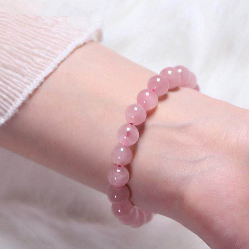 2025天然粉水晶手链女马达加斯加粉晶芙蓉石粉色手串男女时尚单圈