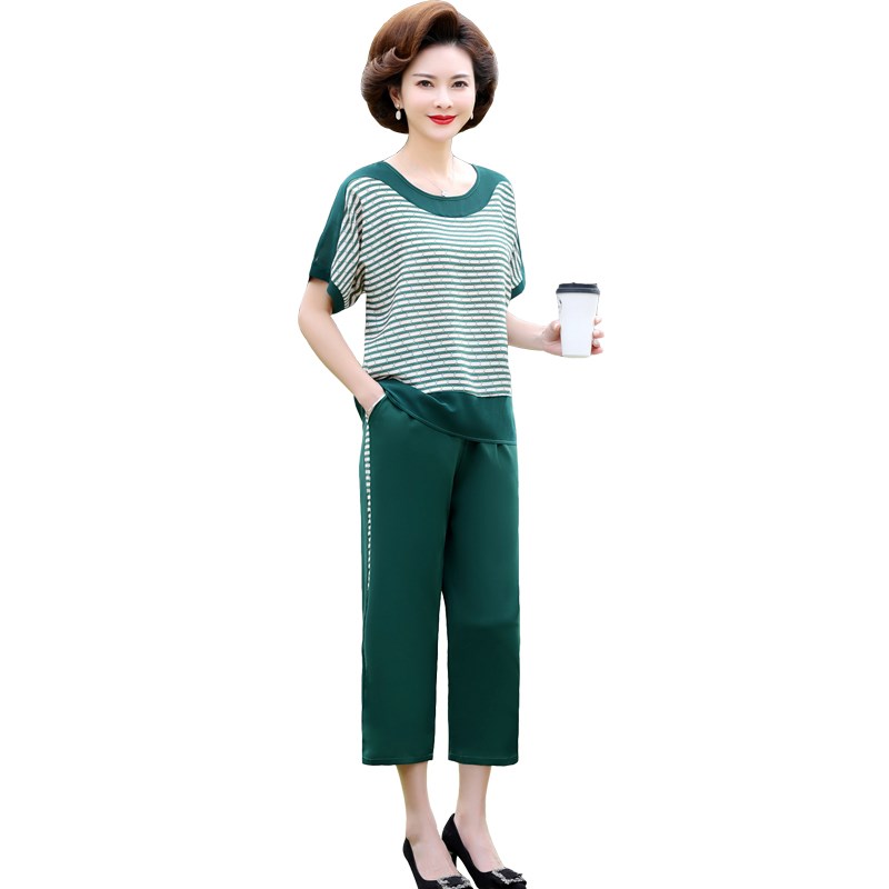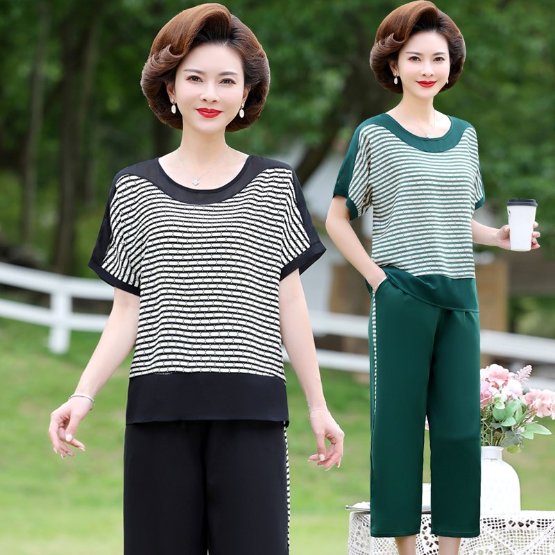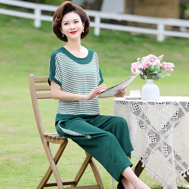 妈妈夏装套装2025新款中年妇女短袖T恤衫中老年女夏季洋气两件套