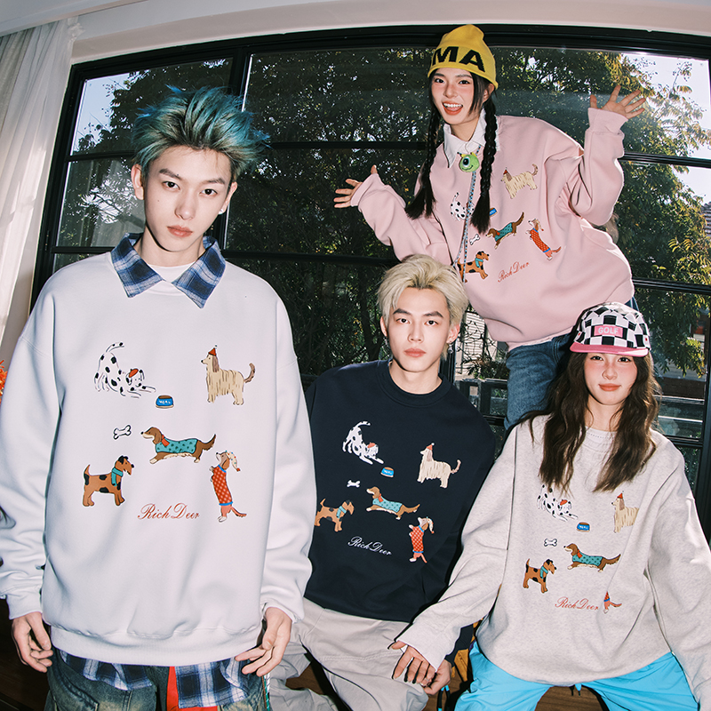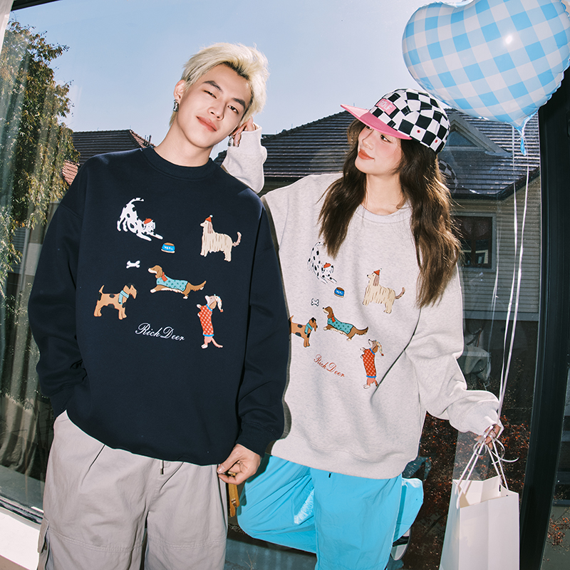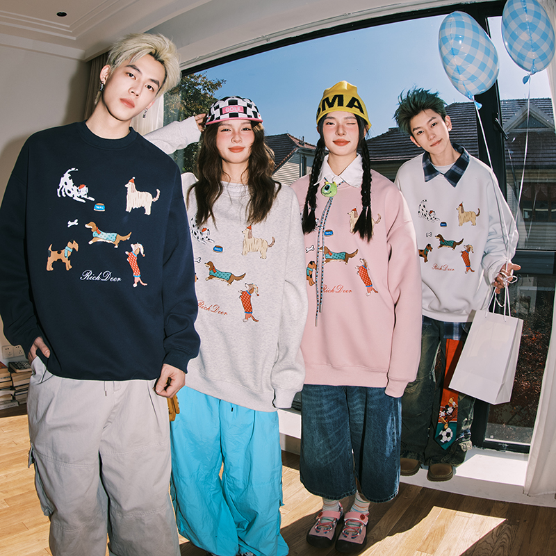 RICHDEER美式趣味卡通小狗氛围感卫衣男女春秋季情侣上衣宽松外套
