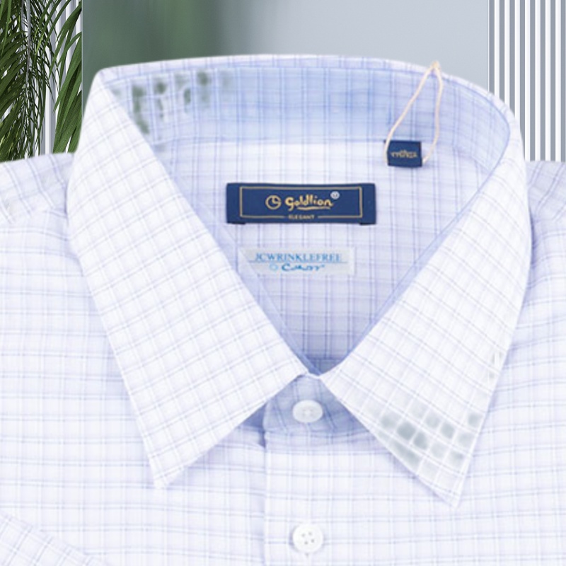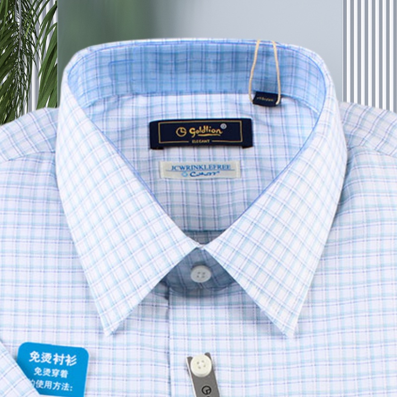 金利来男装免烫短袖衬衫夏季格子修身含桑蚕丝正装MSS21221758-14