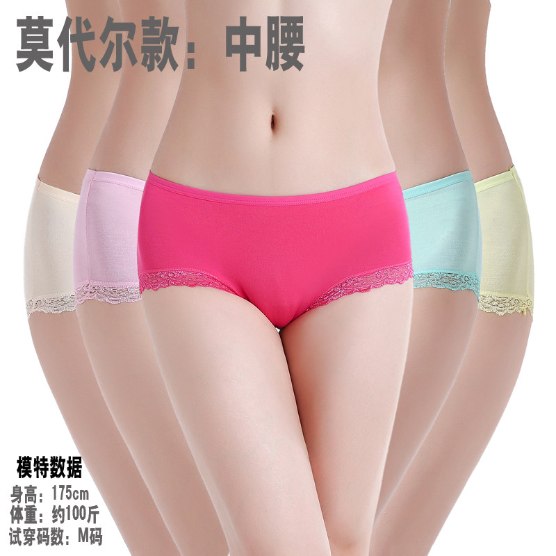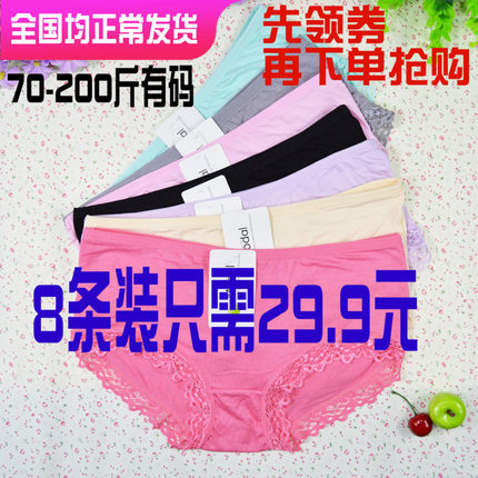 8条莫代尔内裤女中腰比纯棉透气舒适抑菌蕾丝性感大码无痕三角胖m