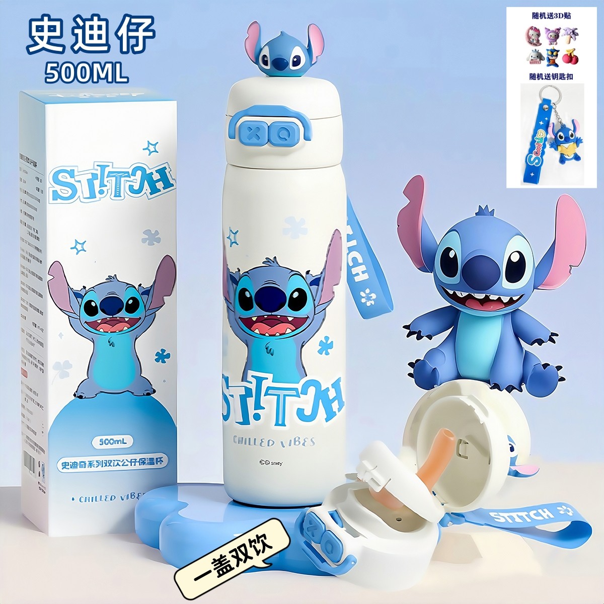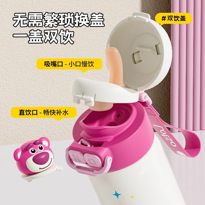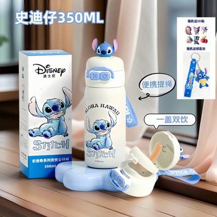 史迪仔可爱迷你小容量保温杯儿童水杯幼儿园男女孩提绳吸管双饮杯