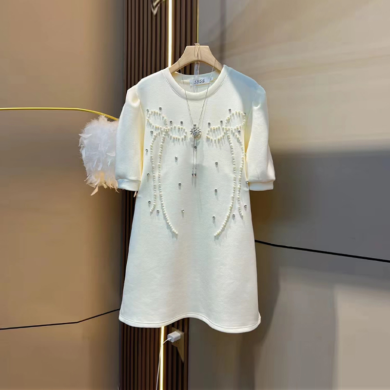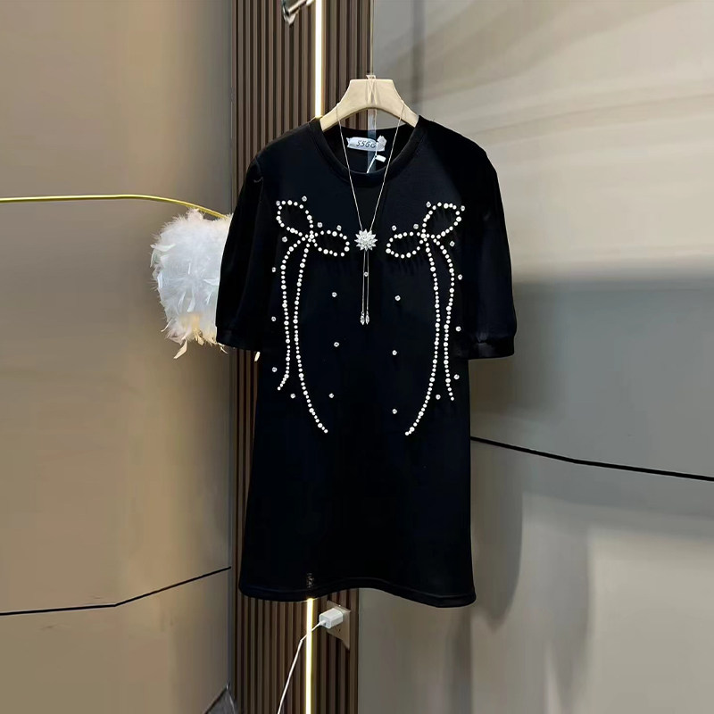 圆领钉珠亮钻短袖T恤裙连衣裙