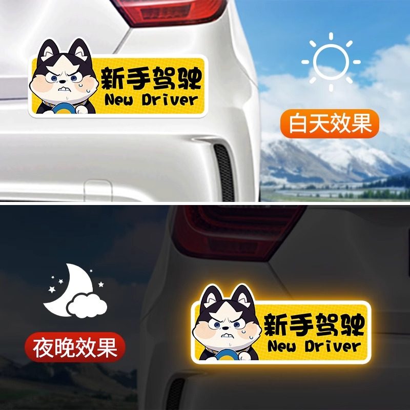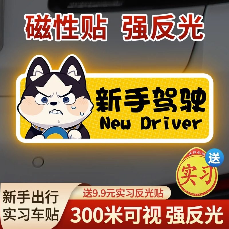 实习期车贴新手上路女司机磁性汽车创意搞笑反光磁贴标志磁吸贴纸