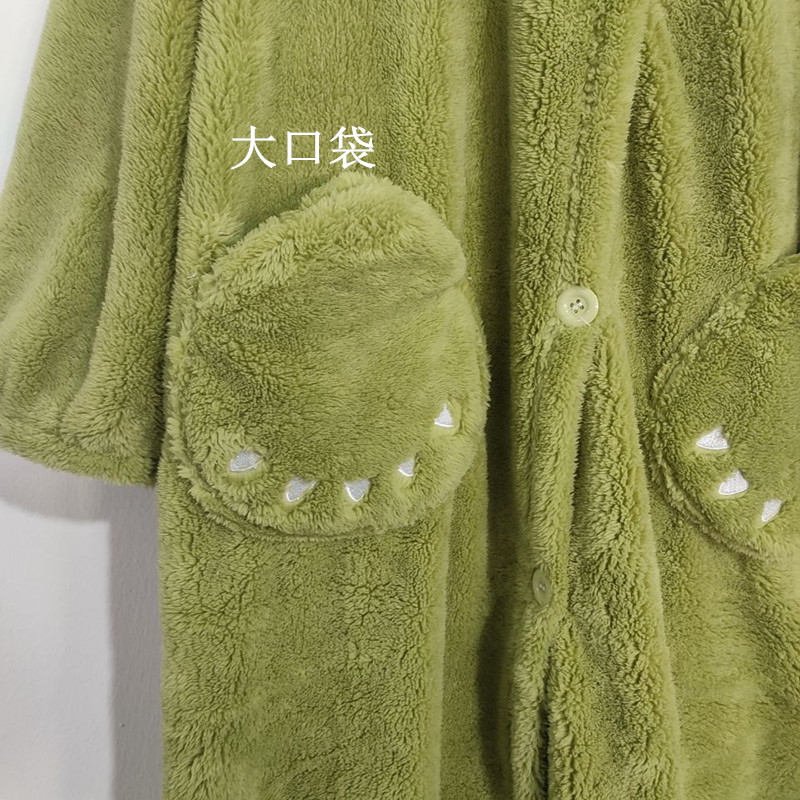 可爱卡通睡衣女生冬季加绒加厚可外穿带帽珊瑚绒睡袍扣子款家居服