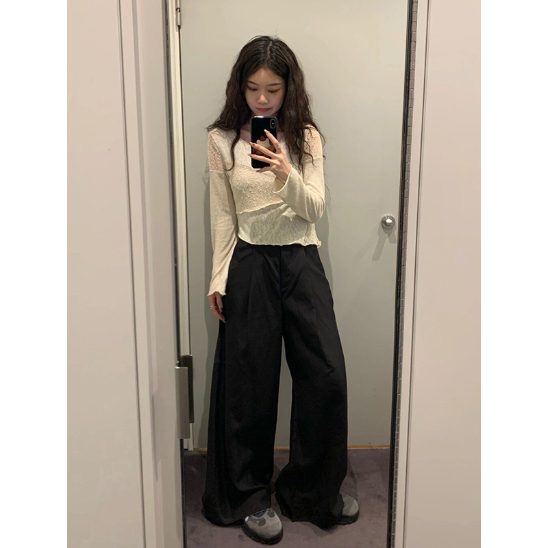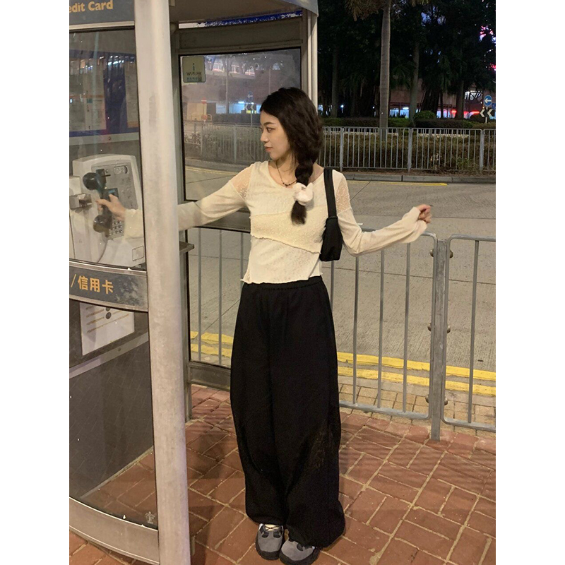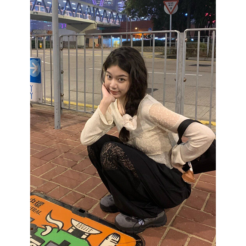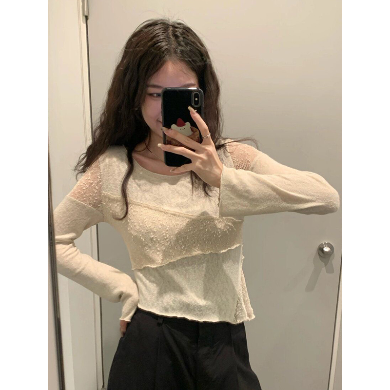 短款设计感蕾丝拼接小众长袖t恤