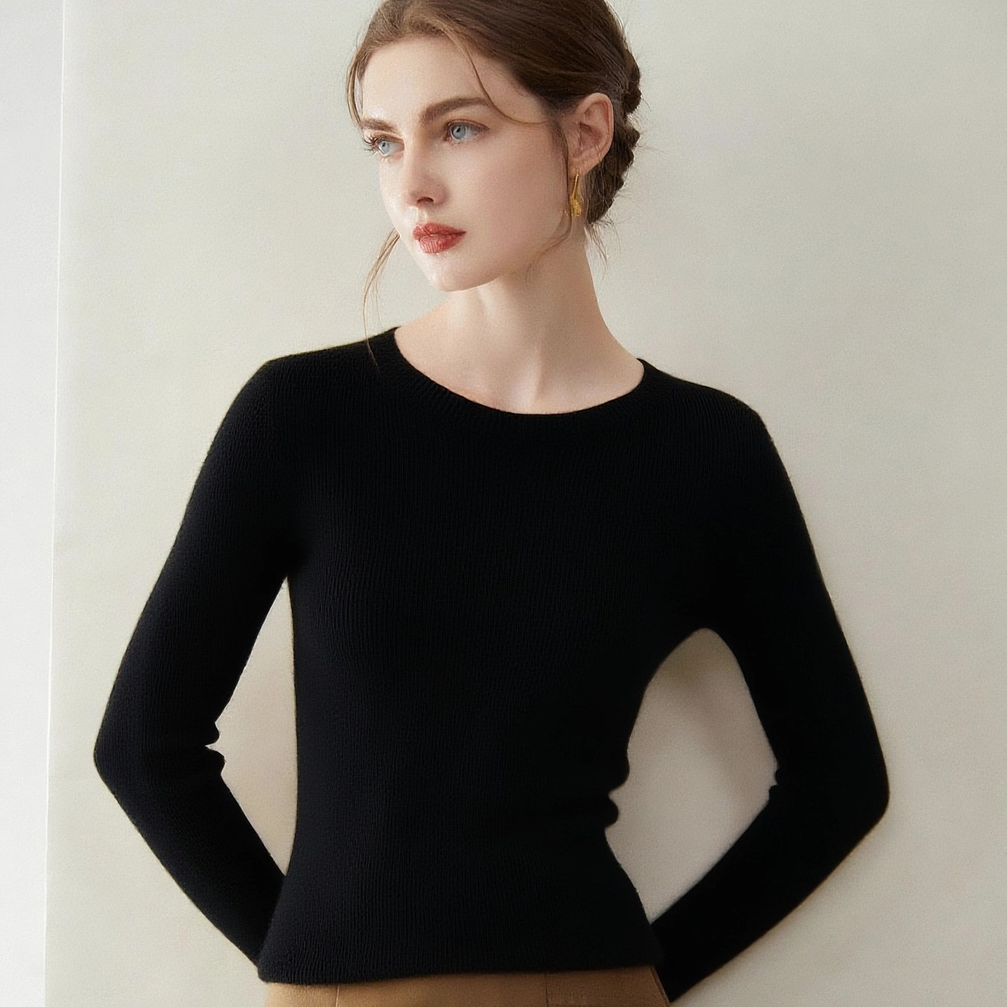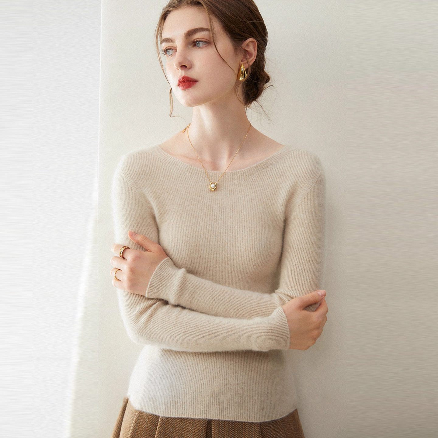 一线成衣 打底羊绒衫女100纯羊绒毛衣套头圆领修身显瘦针织羊毛衫