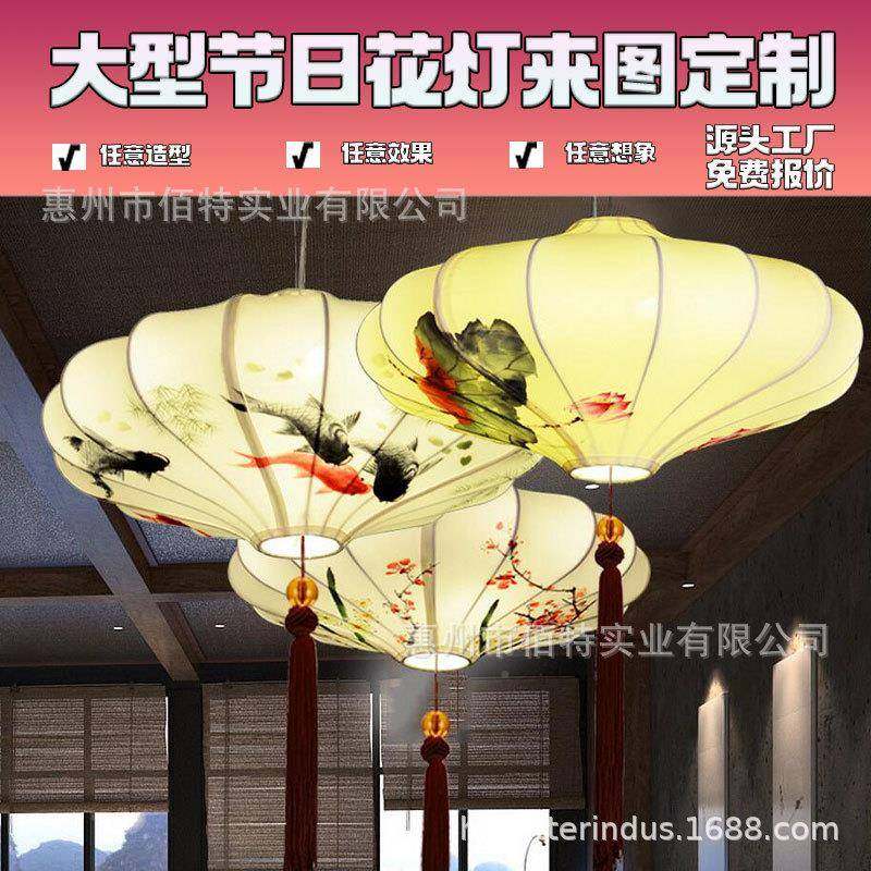新中式吊灯酒店餐笼厅装饰手绘彩色飞碟灯IVS茶商布场置异室形灯