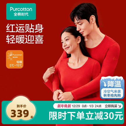 全棉时代男女士幸运红打底套装新年本命年保暖内衣套装红色