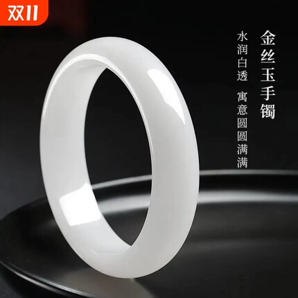 新疆和田金丝玉旺夫真玉手镯女款天然正品玉石羊脂白级少女玉镯子