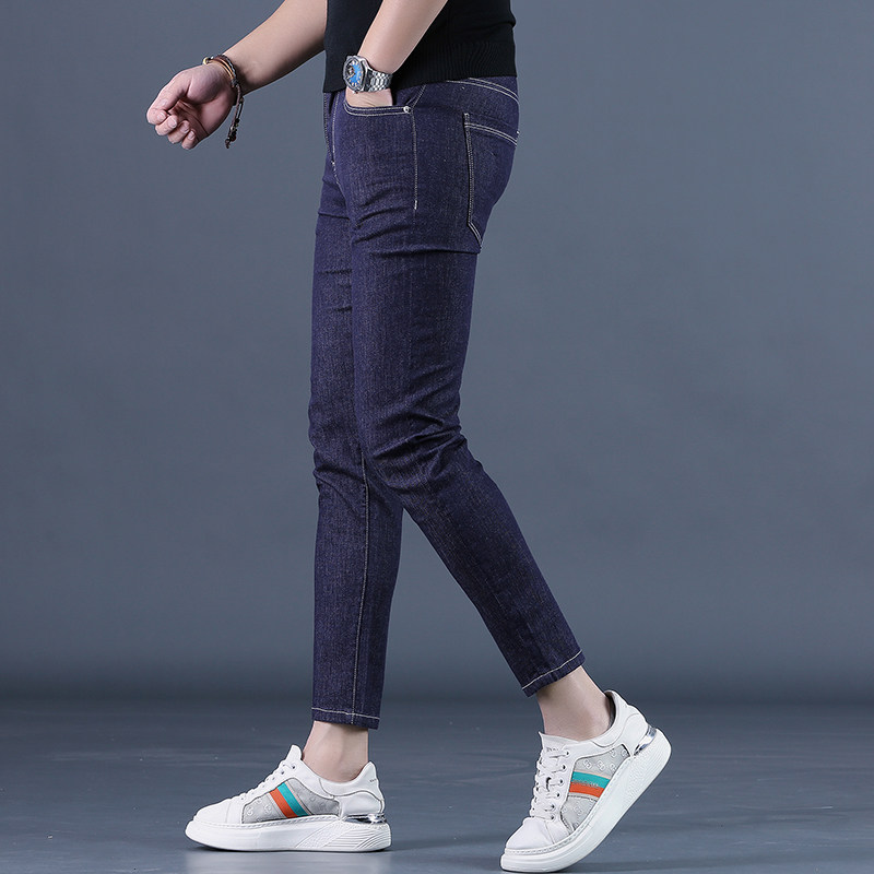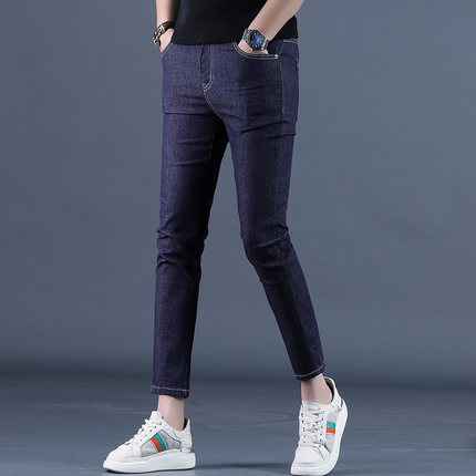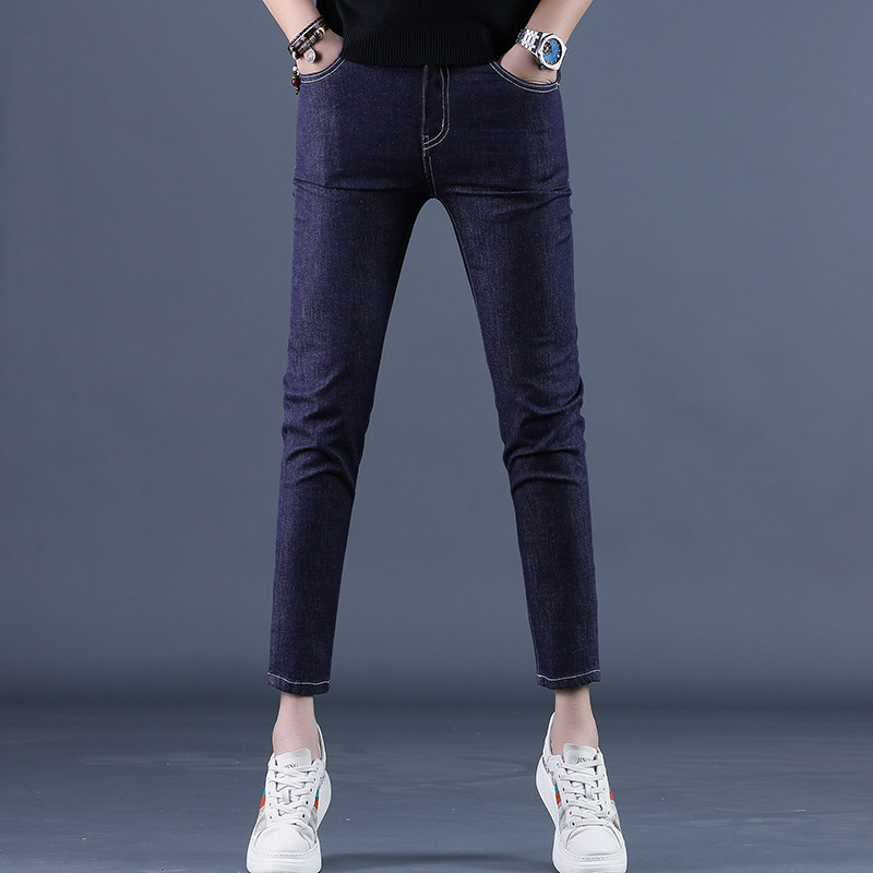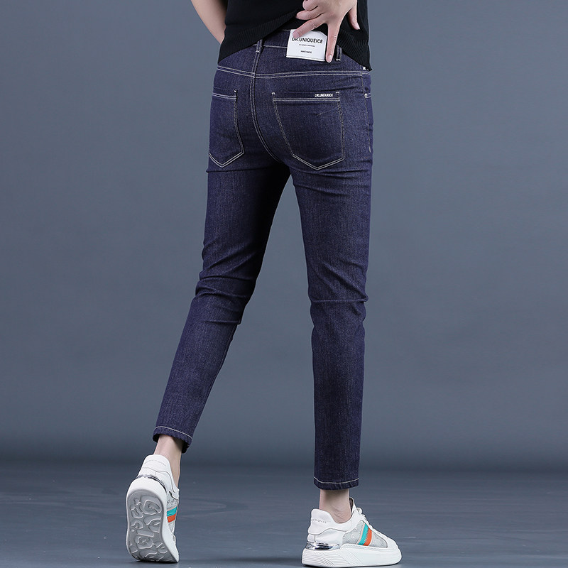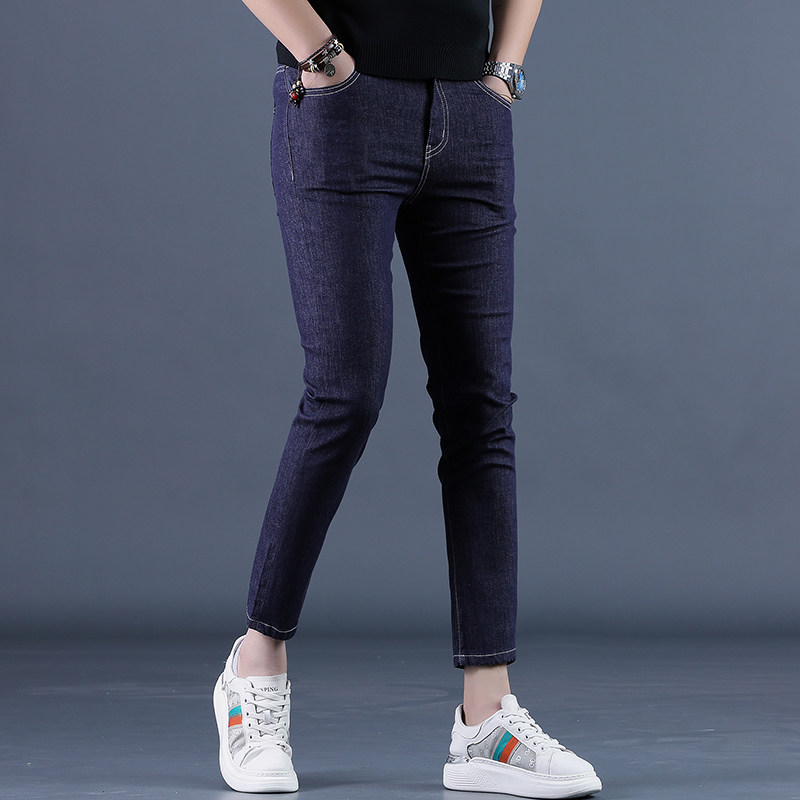 2025新款夏季蓝色九分牛仔裤男修身小脚韩版黑色休闲男士9分裤子