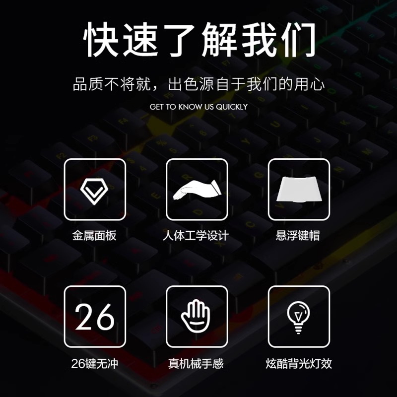 HP惠普机械手感发光键盘鼠标套装有线电竞办公游戏台式电脑笔记本
