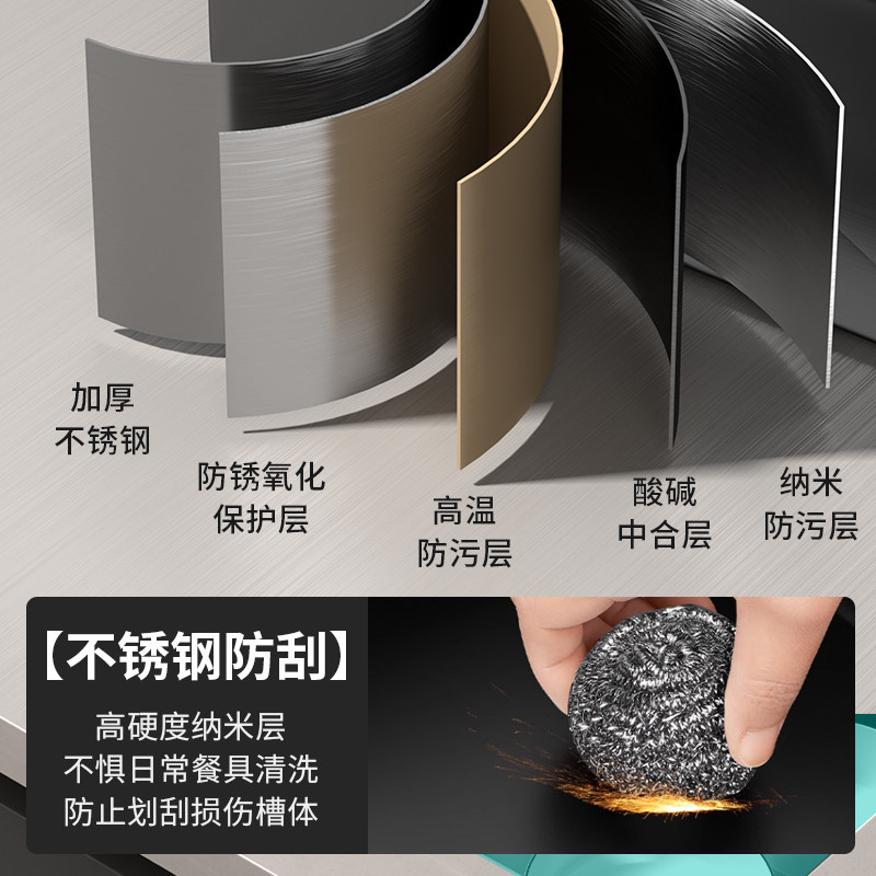 纳米厨房水槽单槽手工加厚304不锈钢黑色家用洗菜盆 大洗碗盆水池
