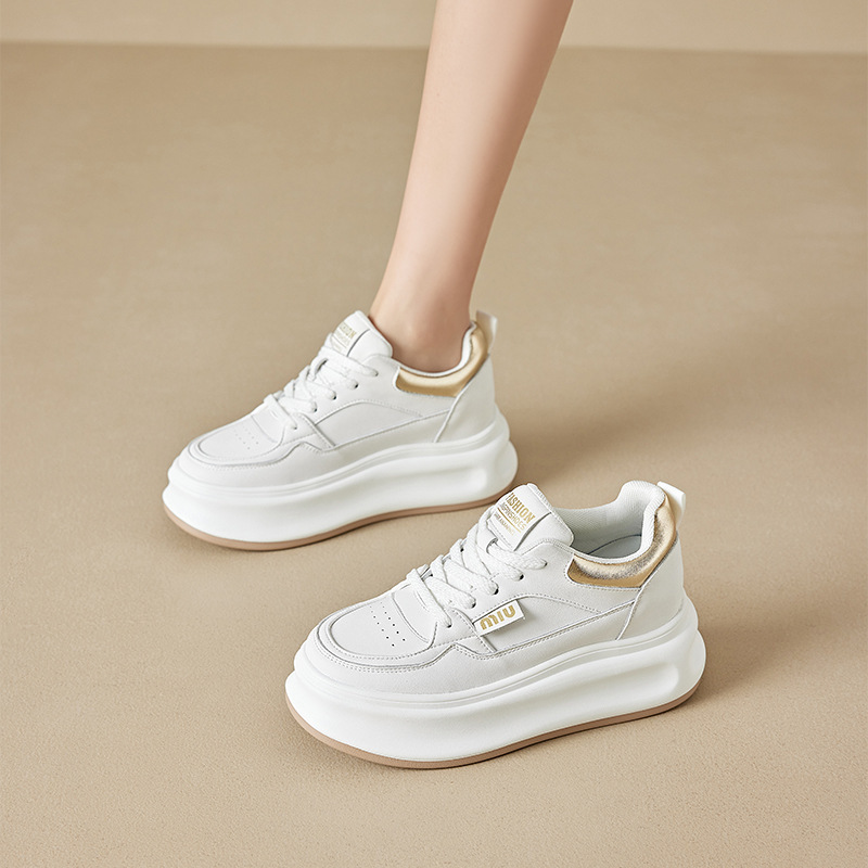 他她女孩2025春季厚底小白鞋女百搭单鞋松糕运动鞋内增高网面休闲