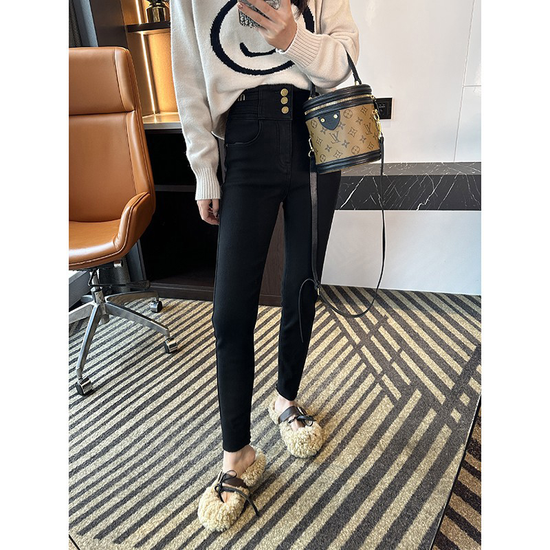 显瘦王牌!~加绒小脚牛仔裤女2025秋冬新款高腰弹力修身铅笔裤子