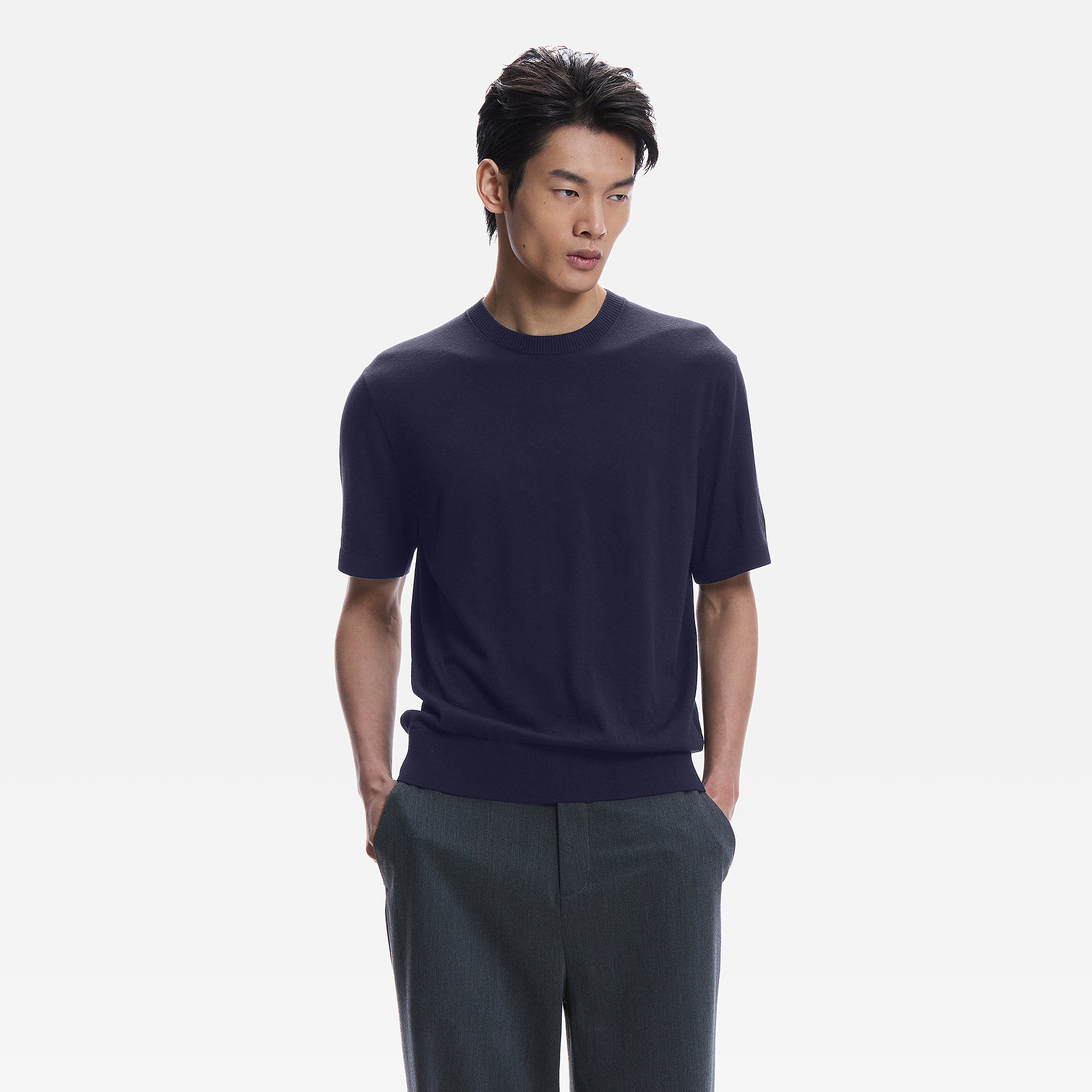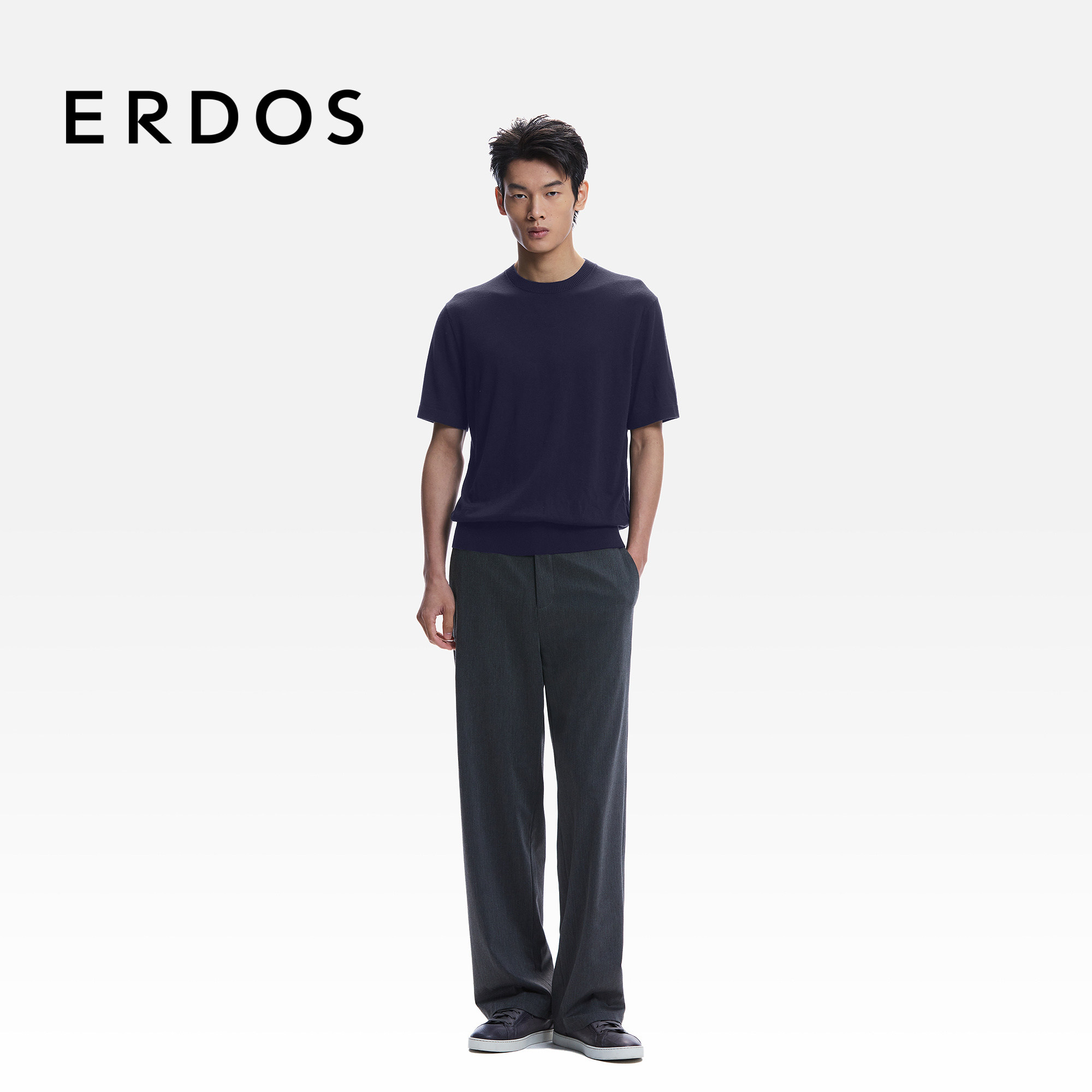 ERDOS 男装纯羊毛针织T恤2026年早春新品圆领短袖商务休闲套衫