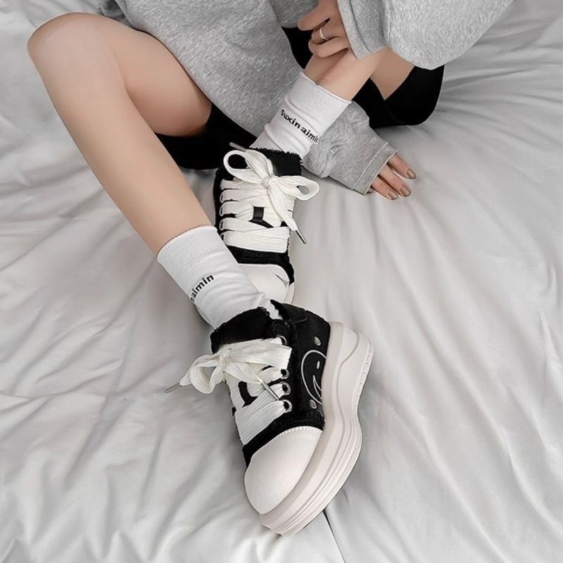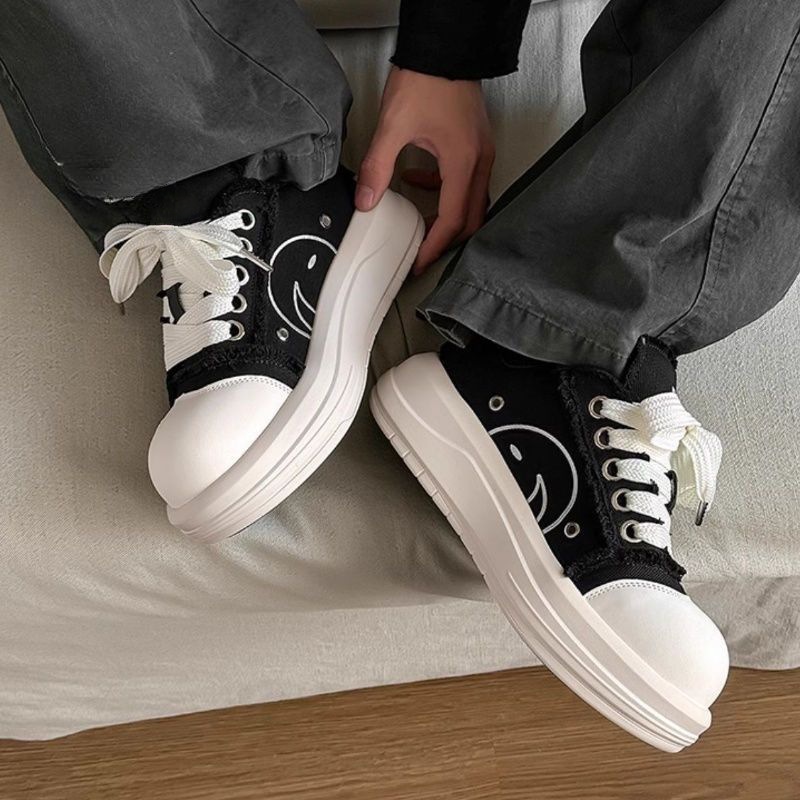 2025新款厚底百搭增高休闲板鞋情侣款透气百搭笑脸板鞋大头帆布鞋