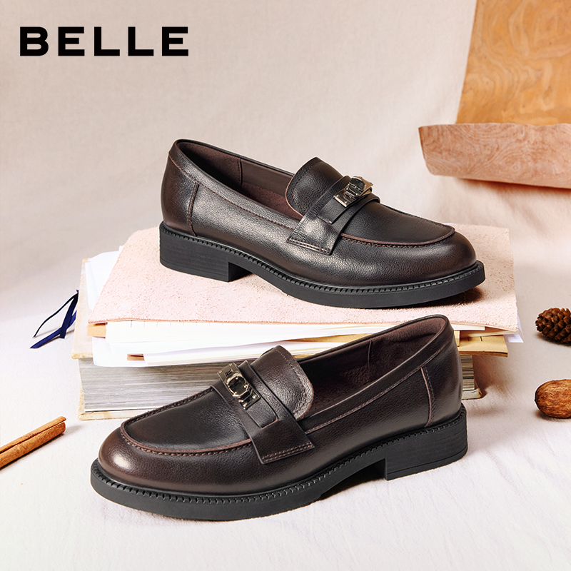 百丽复古学院复古乐福鞋女2026新款真皮黑色小皮鞋单鞋B2973AA6