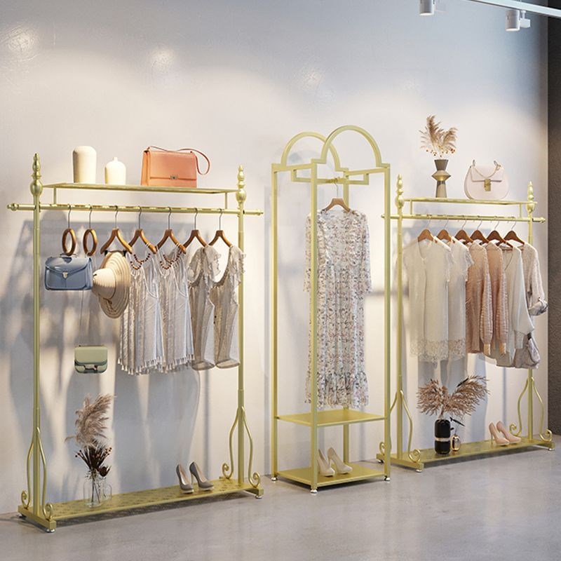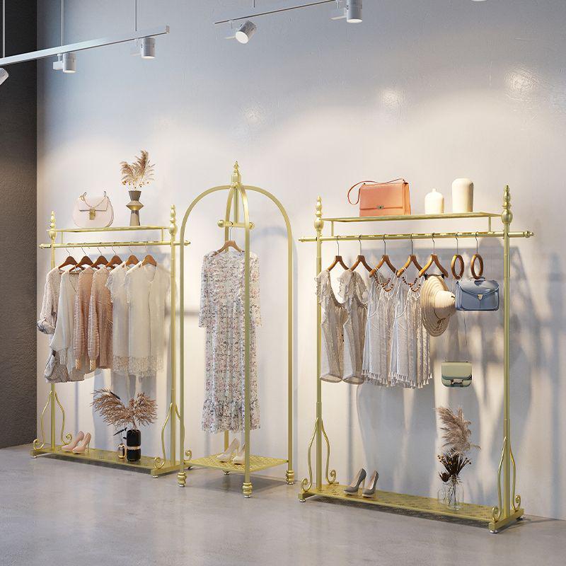 轻奢铁艺店落地货架陈列衣服架落地式挂衣架服装店展示架金色