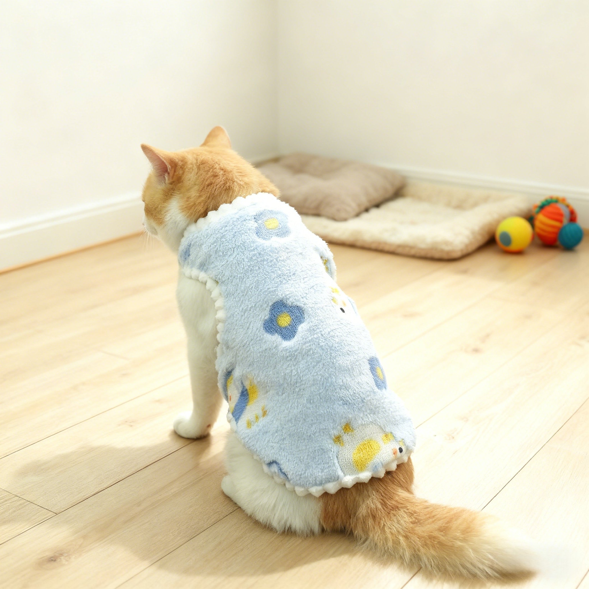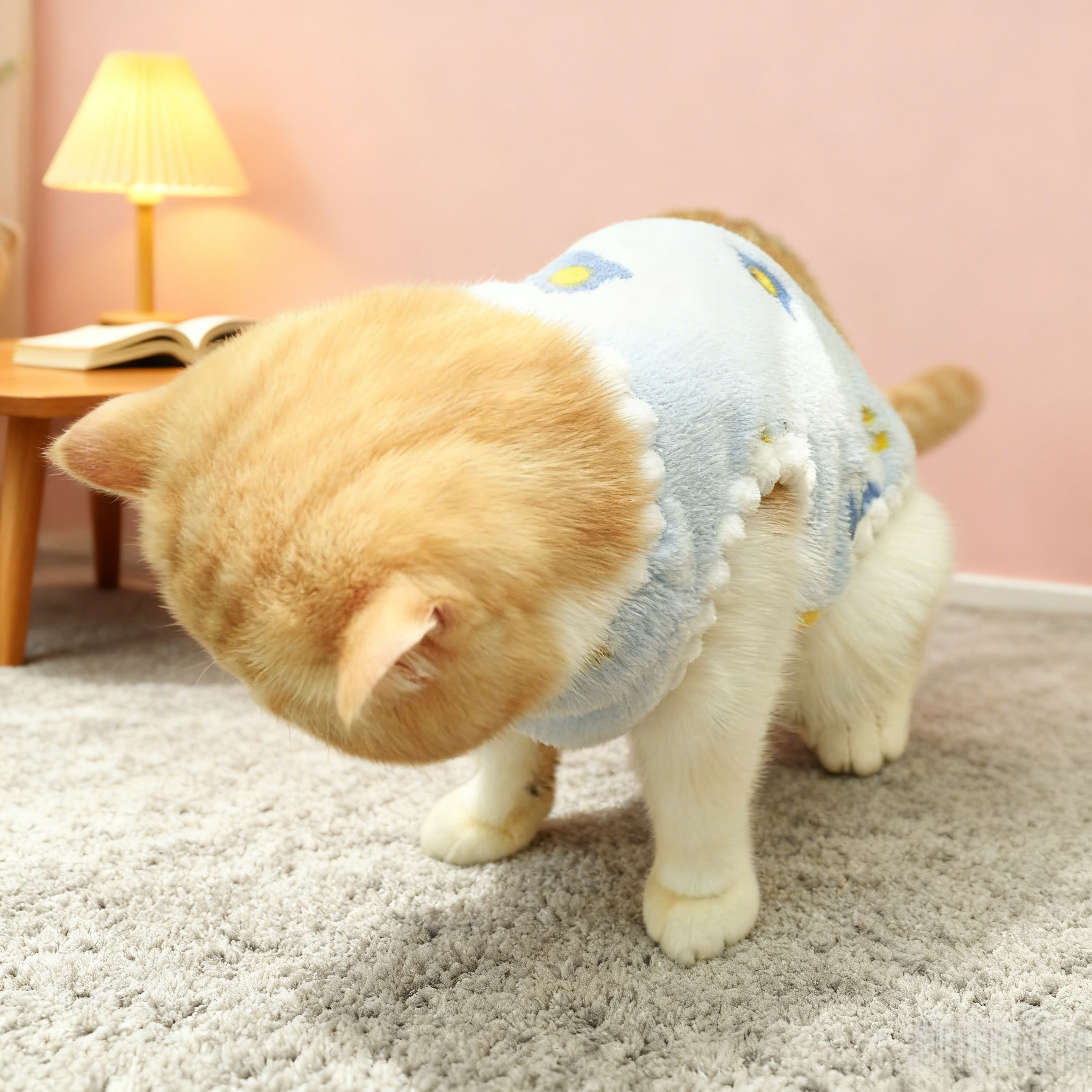 猫咪衣服新款法兰绒带牵引扣加绒加厚秋冬幼猫宠物猫咪背心四脚衣