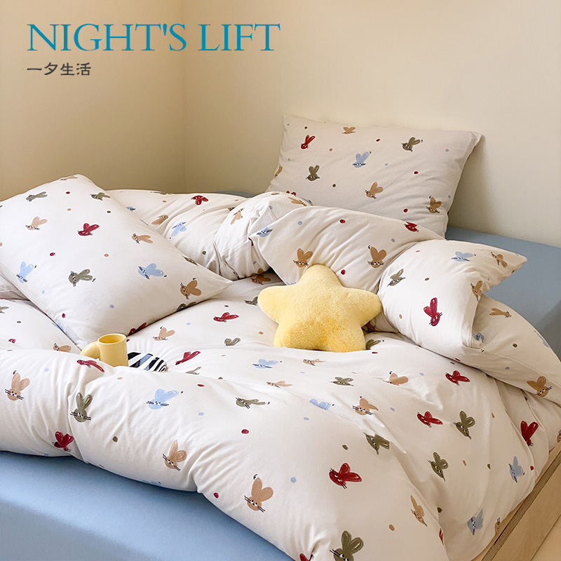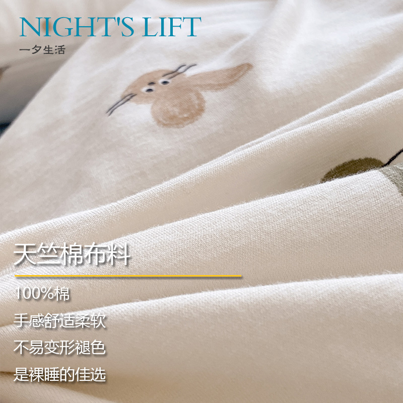 A类母婴级柔软儿童女童卡通天竺棉针织棉四件套床笠床单小兔床品