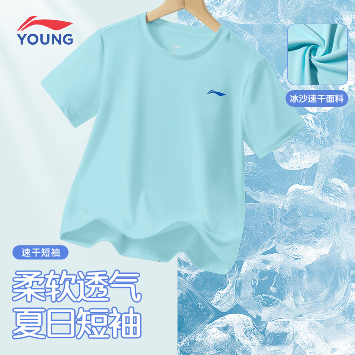 李宁童装短袖T恤男童女小大童夏季新款速干透气冰丝运动休闲上衣