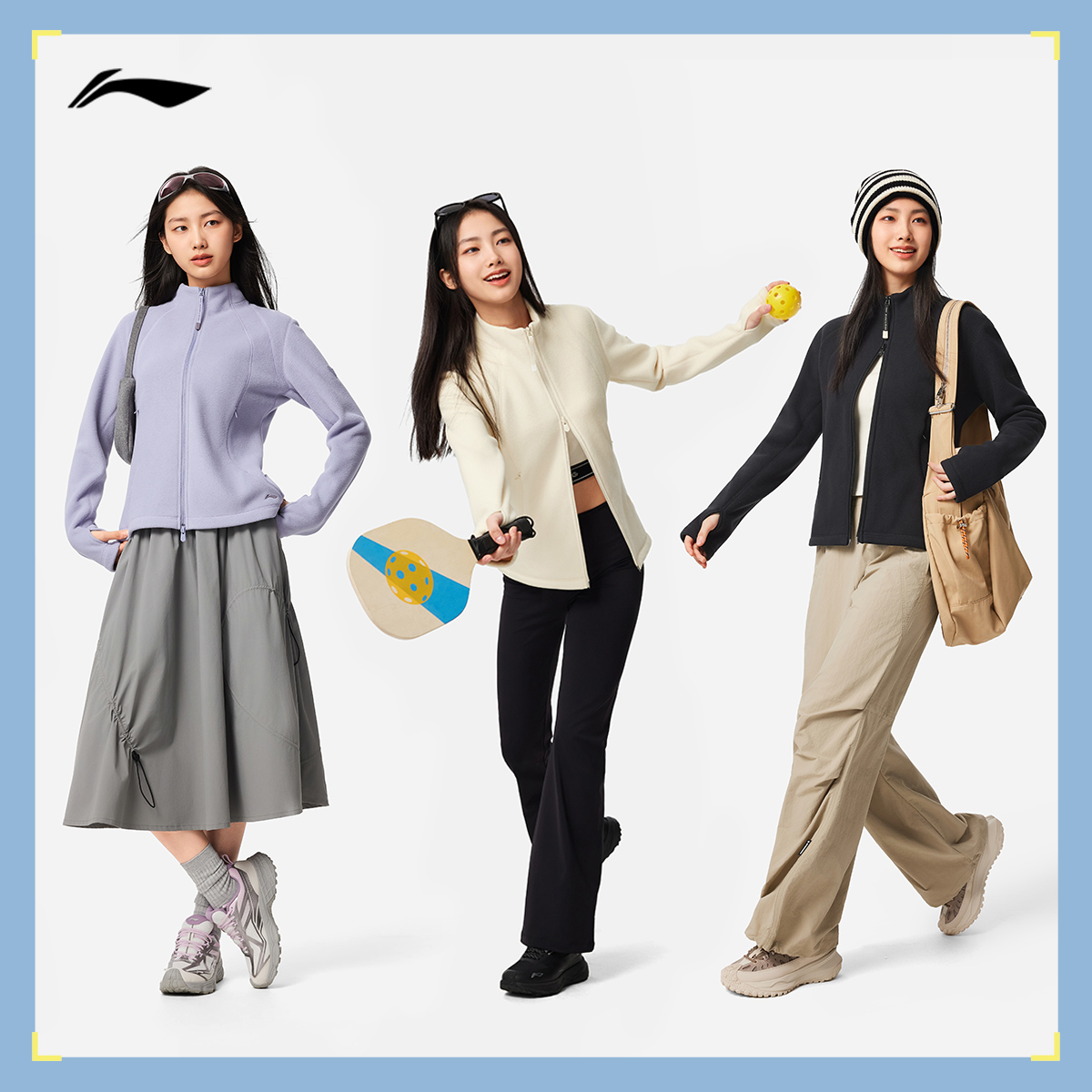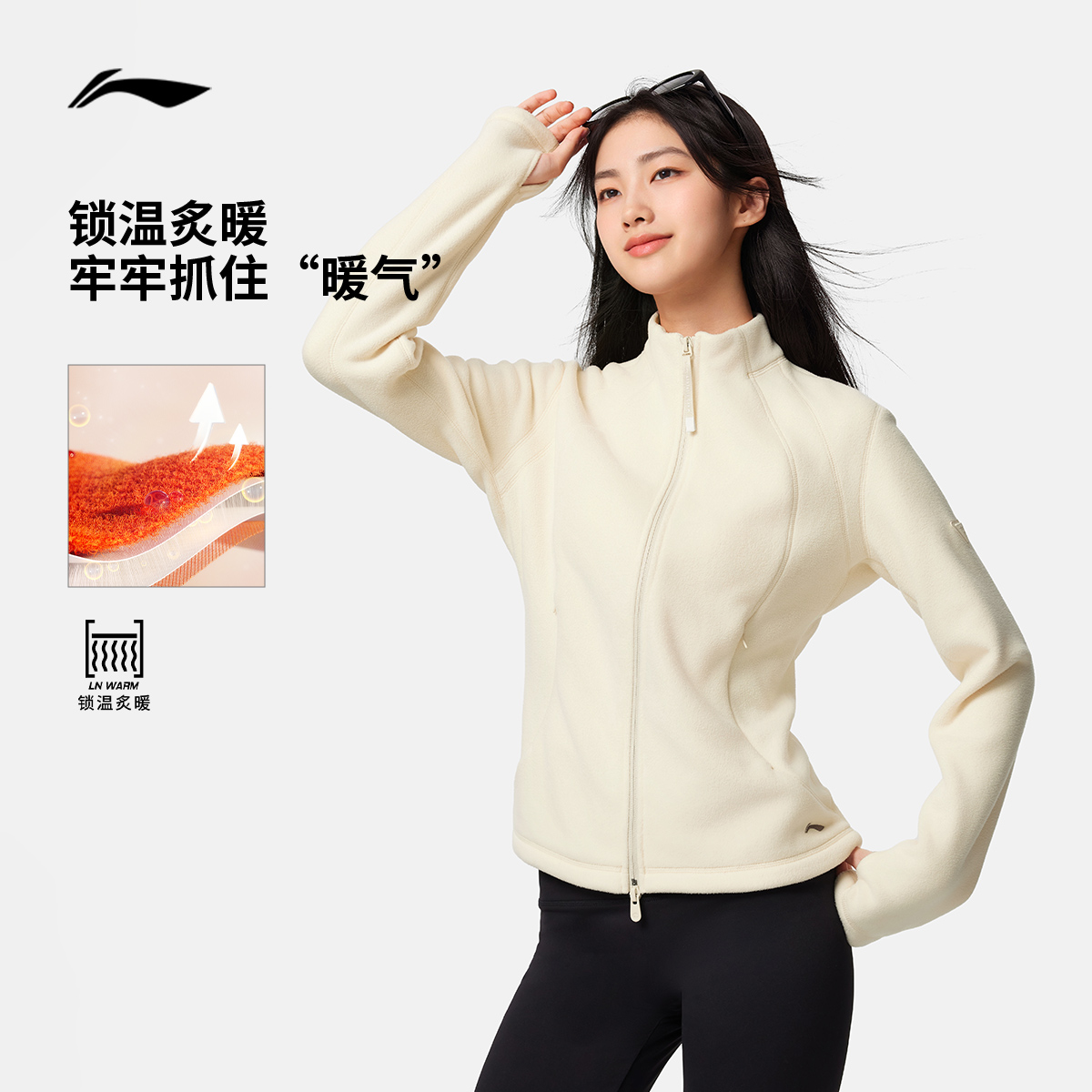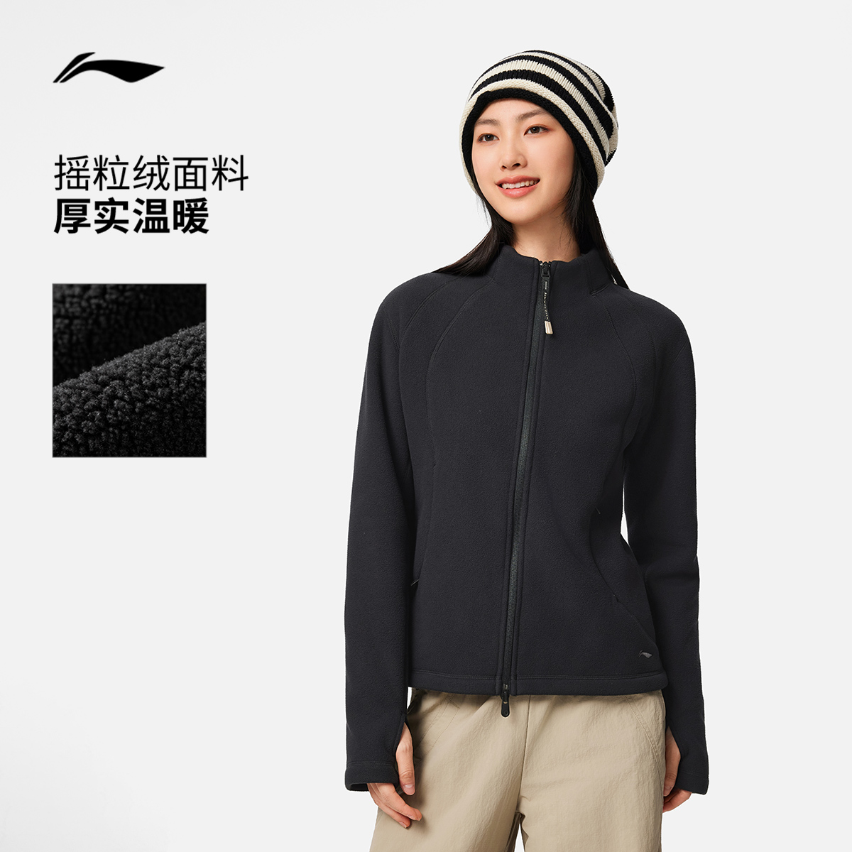 李宁抓绒衣女秋季2025新款加绒内搭上衣保暖摇粒绒外套女运动卫衣