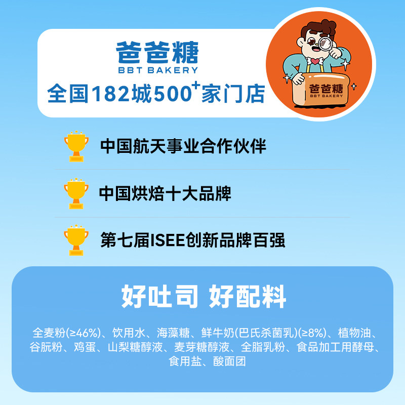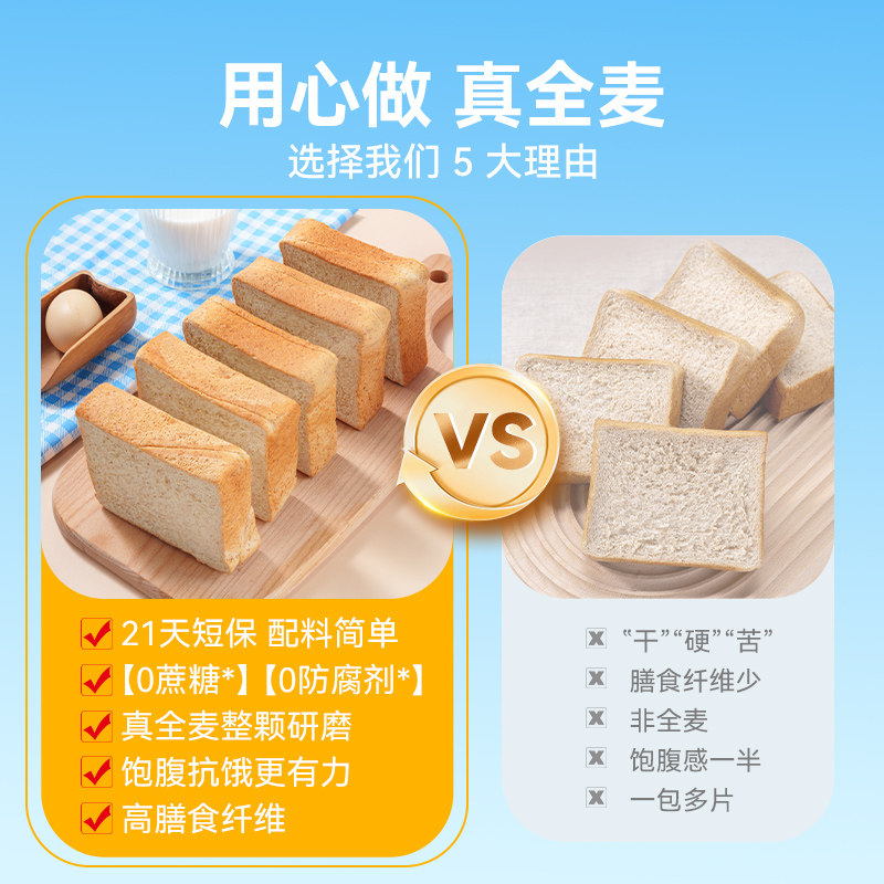 爸爸糖短保全麦面包无糖厚切吐司片营养早餐食品零食整箱无添加