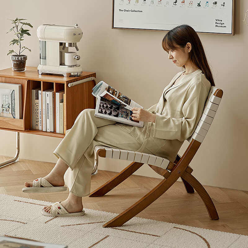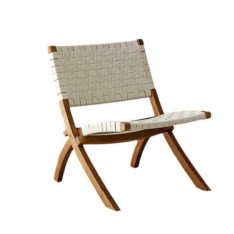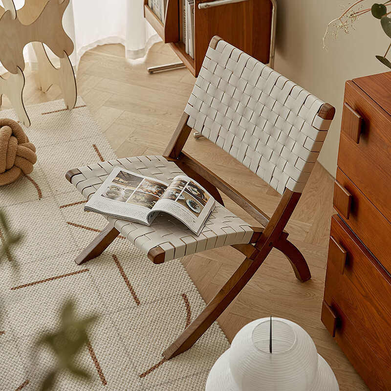 马鞍皮实木休闲椅家用折叠阳台餐椅轻奢中古椅复古民宿