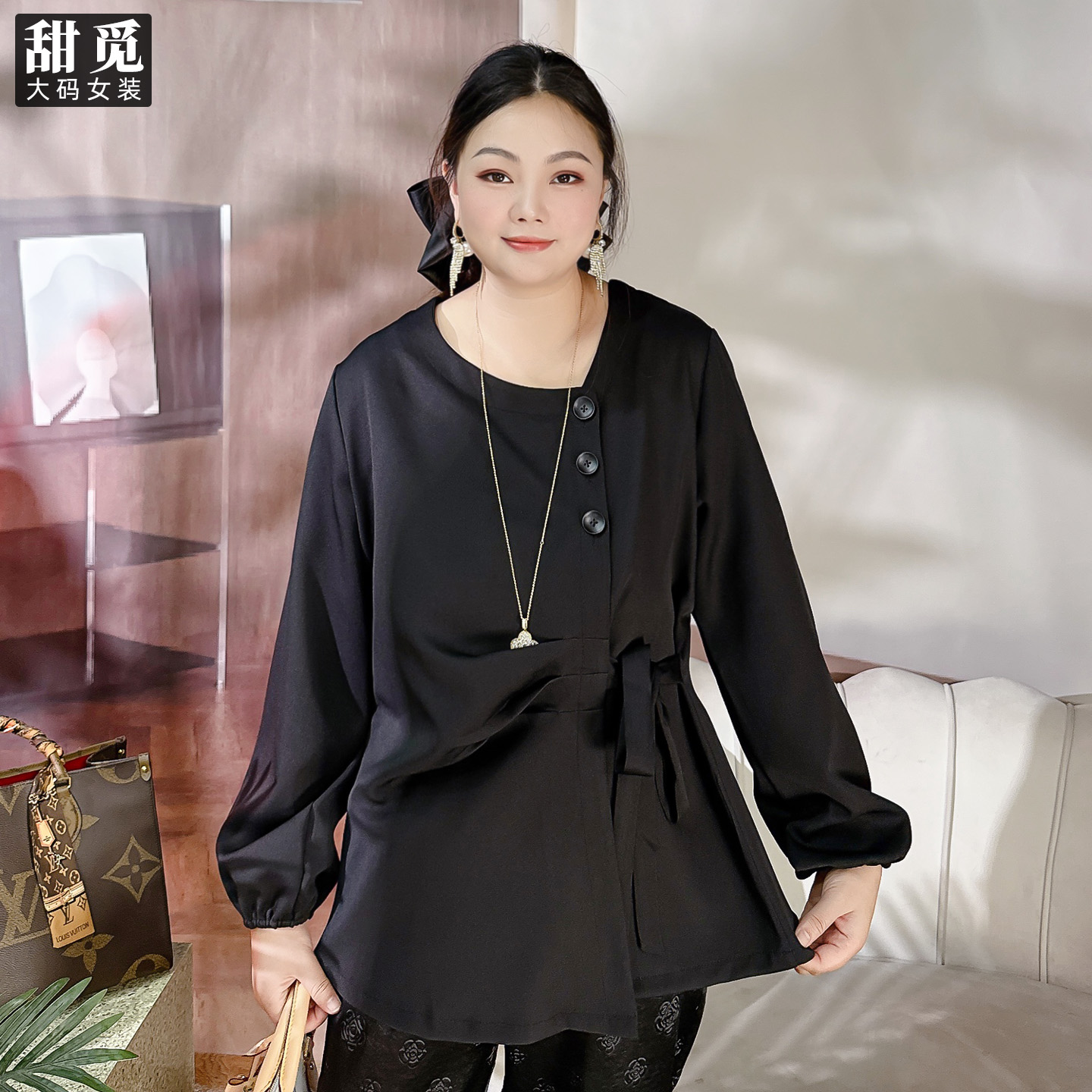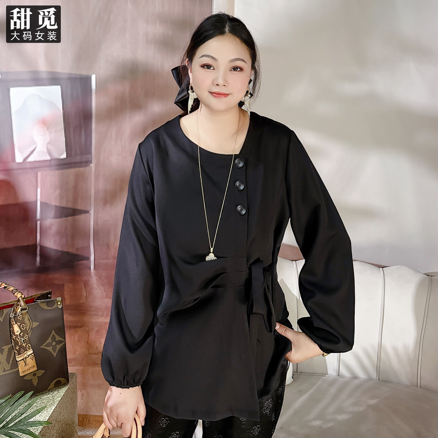 甜觅特大码女装2025秋装胖mm300斤气质通勤宽松中长款圆领针织衫