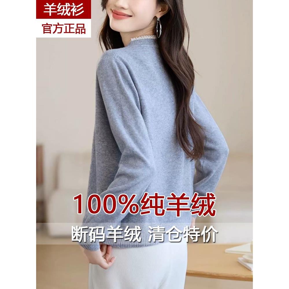 羊绒针织开衫女2025早秋新款气质设计感花边遮肉显瘦毛衣纯色外套