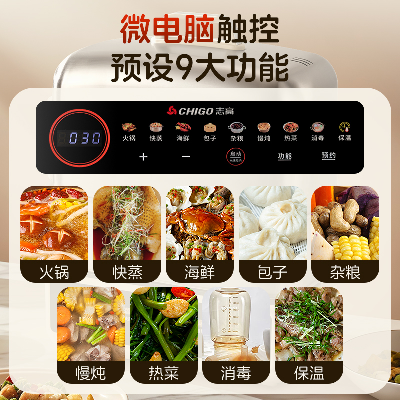 志高电蒸锅不锈钢多功能全自动家用蒸煮炖一体蒸舱大容量2025新款