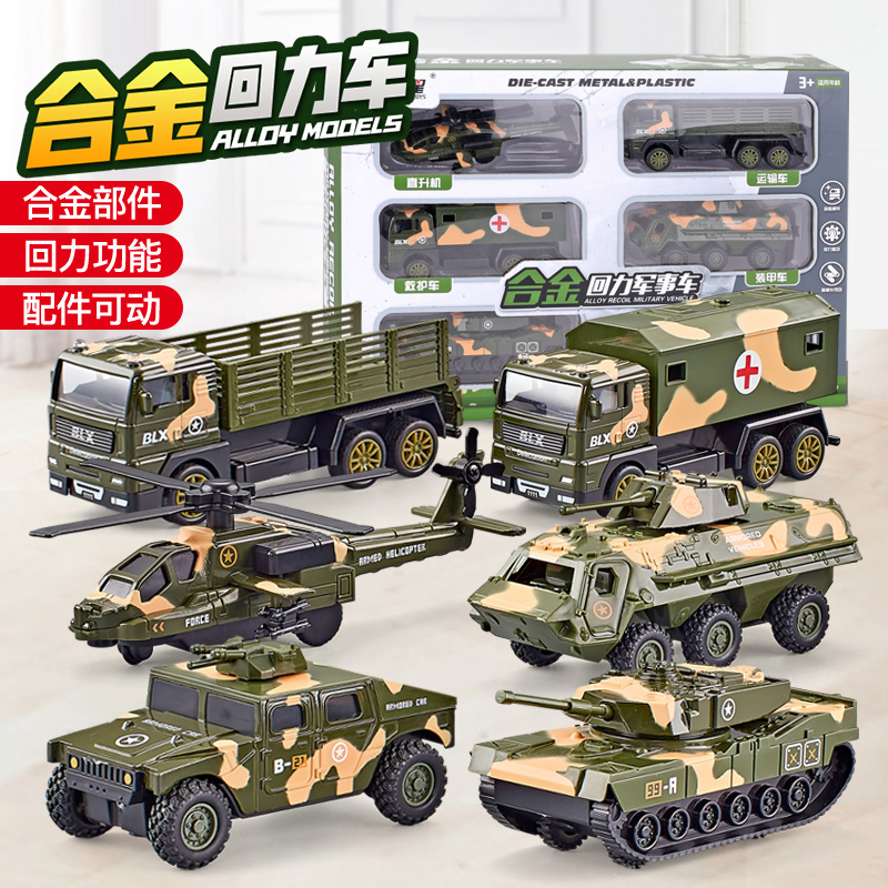 儿童玩具车套装男孩合金回力小汽车军事坦克装甲车消防车工程车