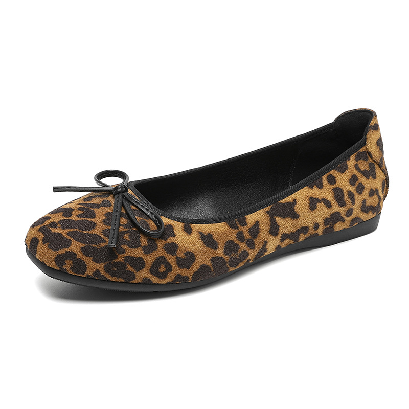 温柔平底瓢鞋奶奶鞋春夏法式软底单鞋女鞋方头豹纹蝴蝶结时尚鞋子
