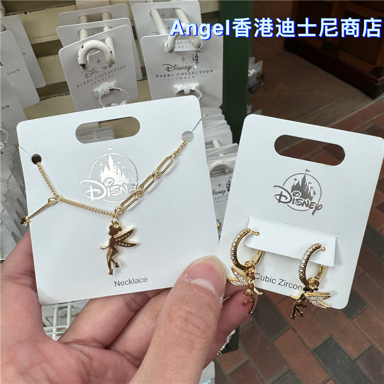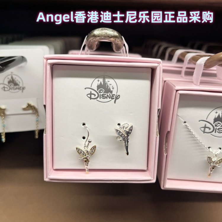 香港迪士尼乐园 花仙子可爱吊坠卡通耳钉 项链 饰品