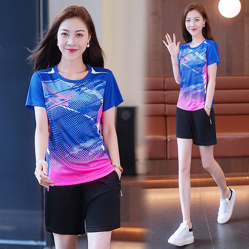 啄木鸟冰丝速干运动套装女新款比赛训练服短袖短裤健身休闲两件套