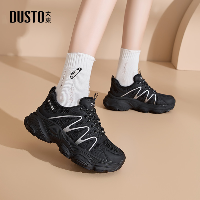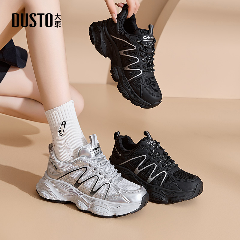 大东老爹鞋女鞋2025冬季新款休闲平底高跟系带圆头D1362