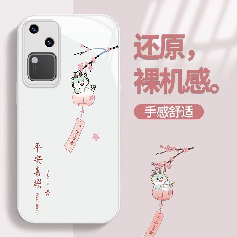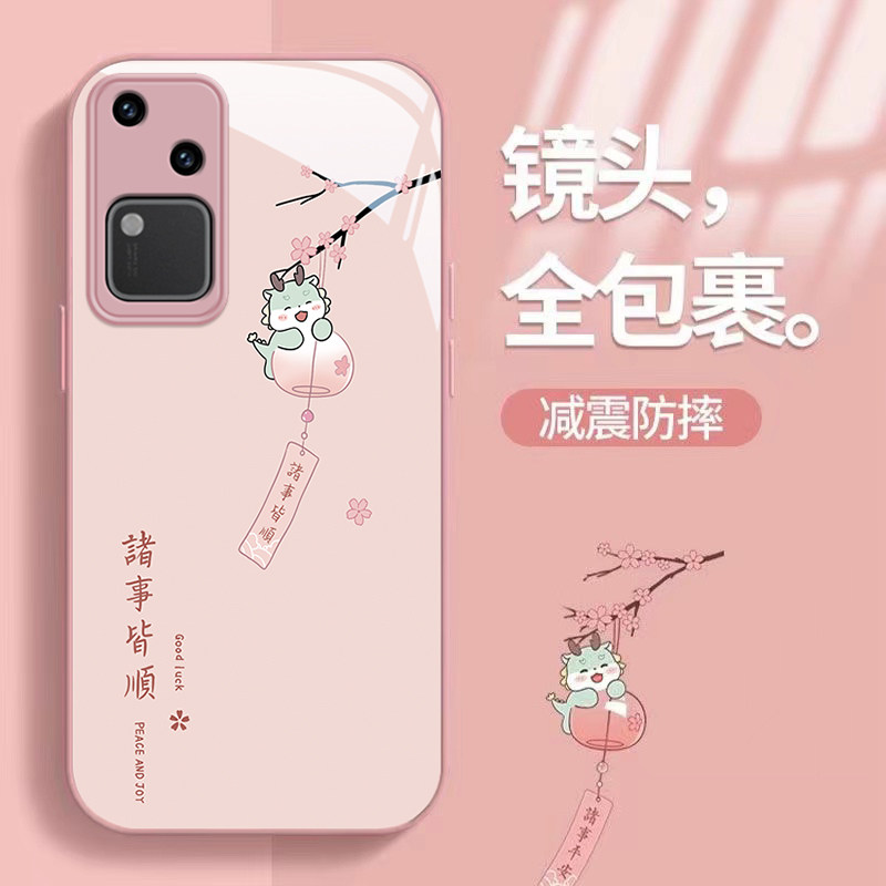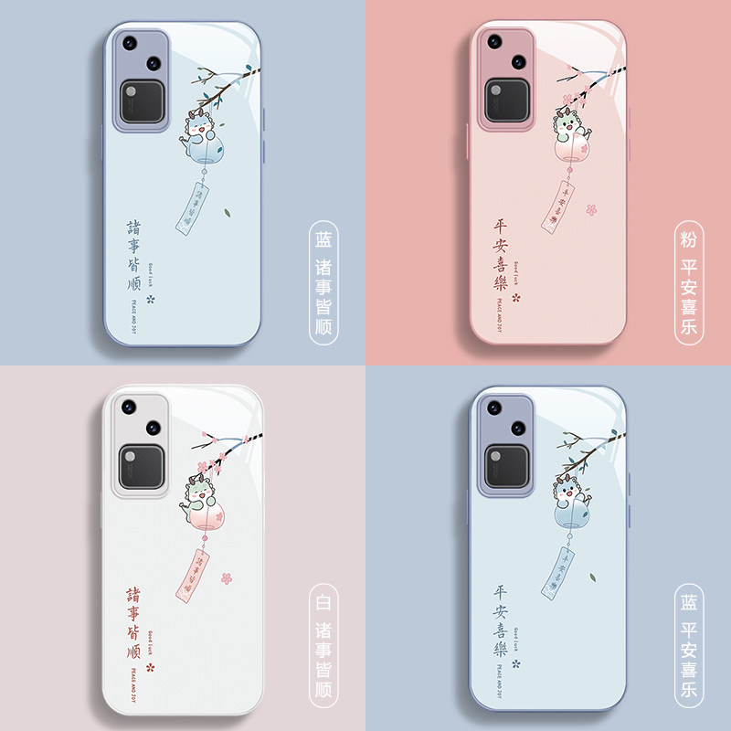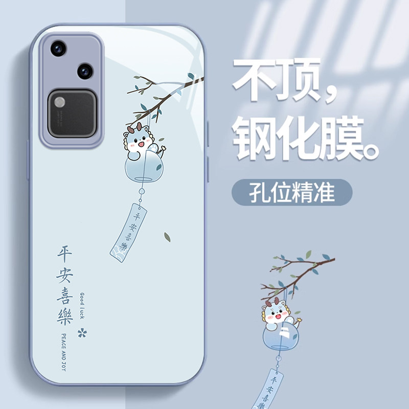 适用vivoS18手机壳S18e时尚S17t简约S16Pro潮流S15中国风S12Pro诸事皆顺S10e金属漆玻璃套S9全包S7t防摔壳