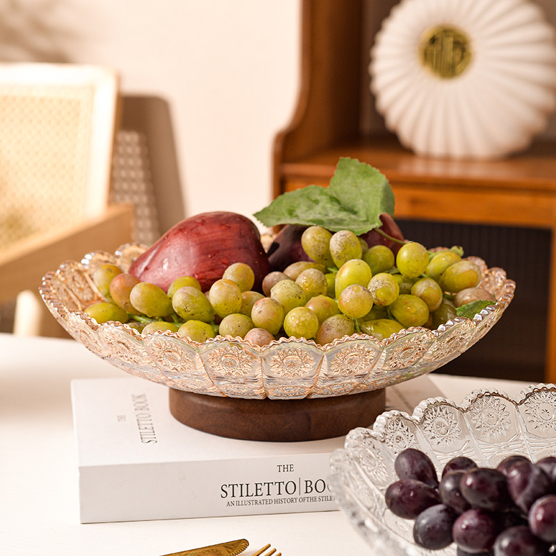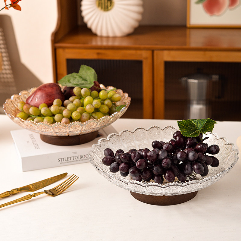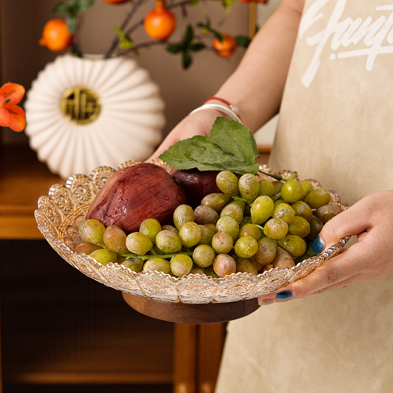 复古轻奢高档水晶玻璃水果盘高级感客厅果盘家用茶几零食糖果盘