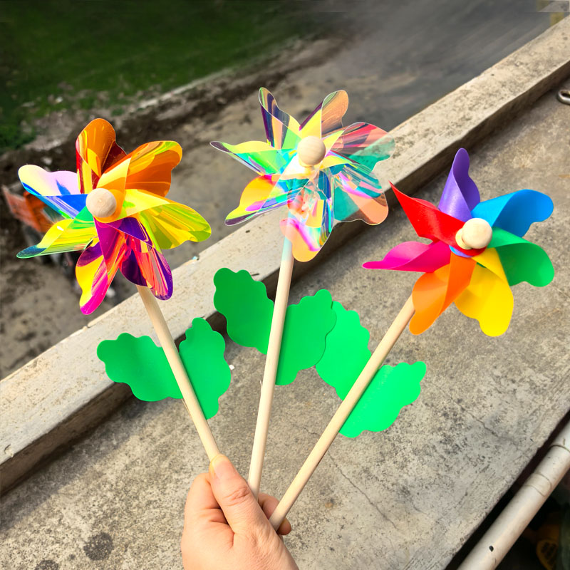七彩木杆田园户外幼儿园活动亲子运动会大号装饰风车儿童玩具包邮