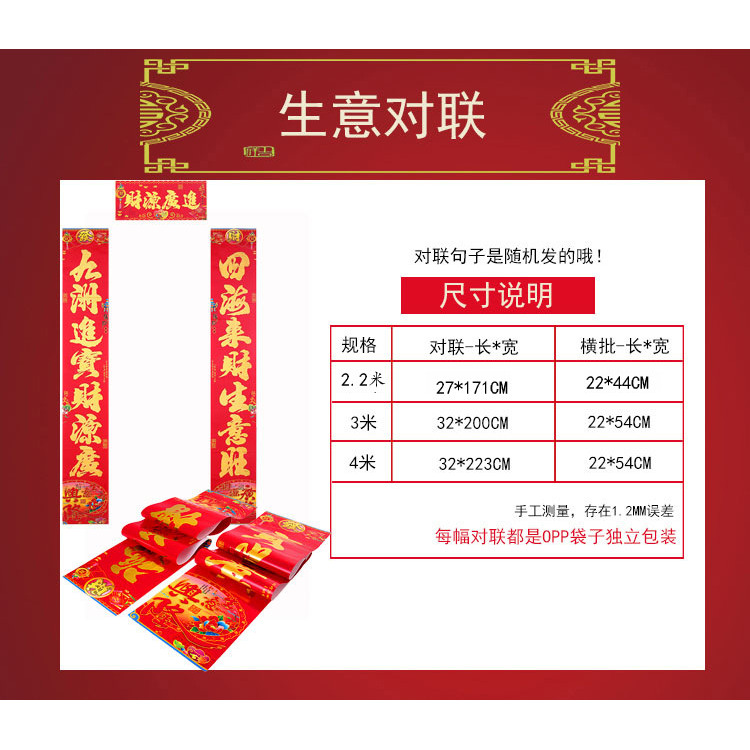 2026新款专版生意兴隆植绒春联现货直供门店开业高档生意对联