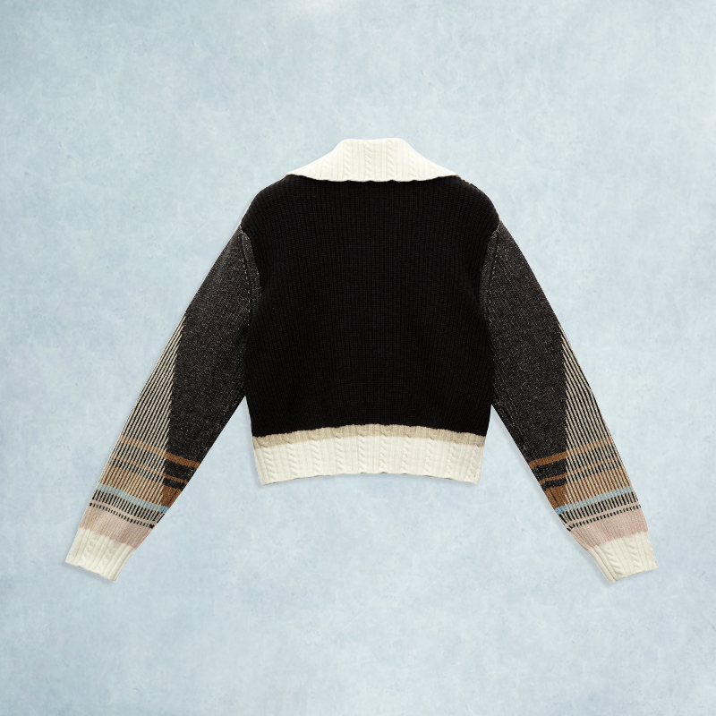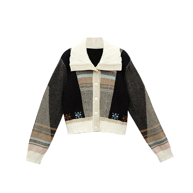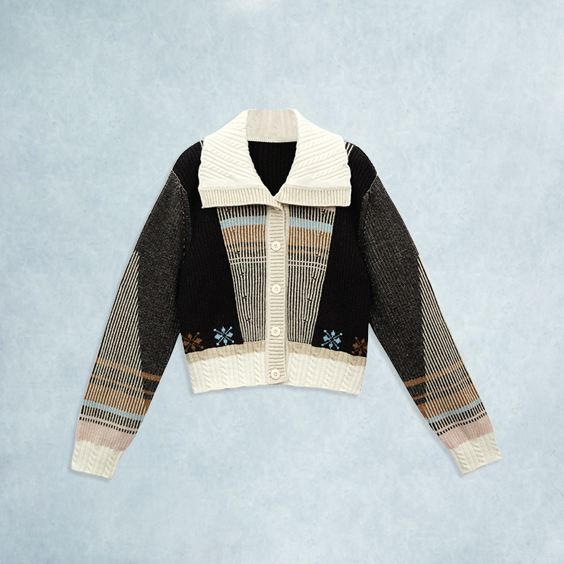 洲升/CHAU.RISING2025秋冬新款大翻领拼接羊绒开衫复古游牧风毛衣