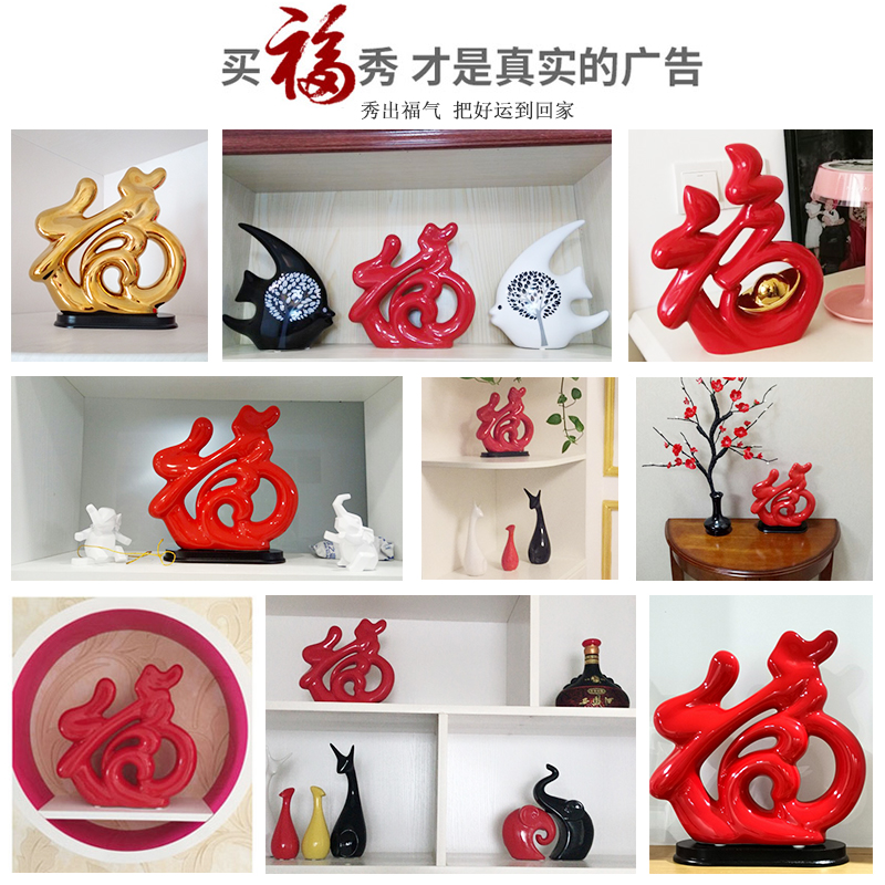 现代简约陶瓷福字摆件家居客厅酒柜装饰品玄关桌面件乔迁结婚礼物
